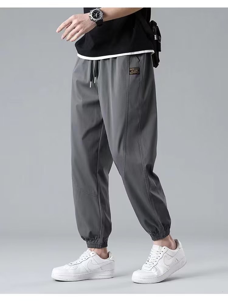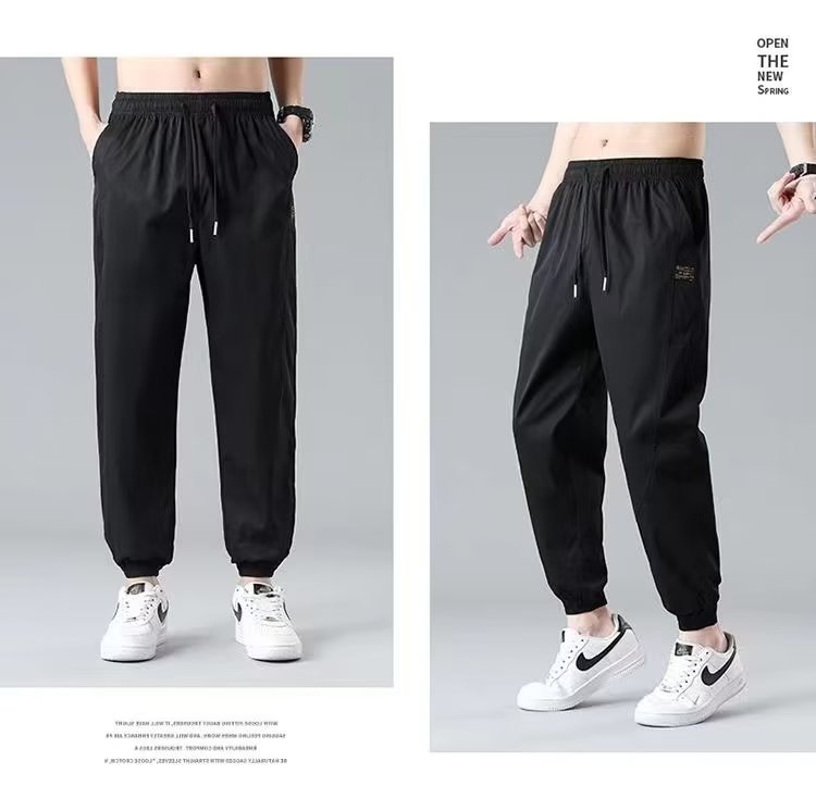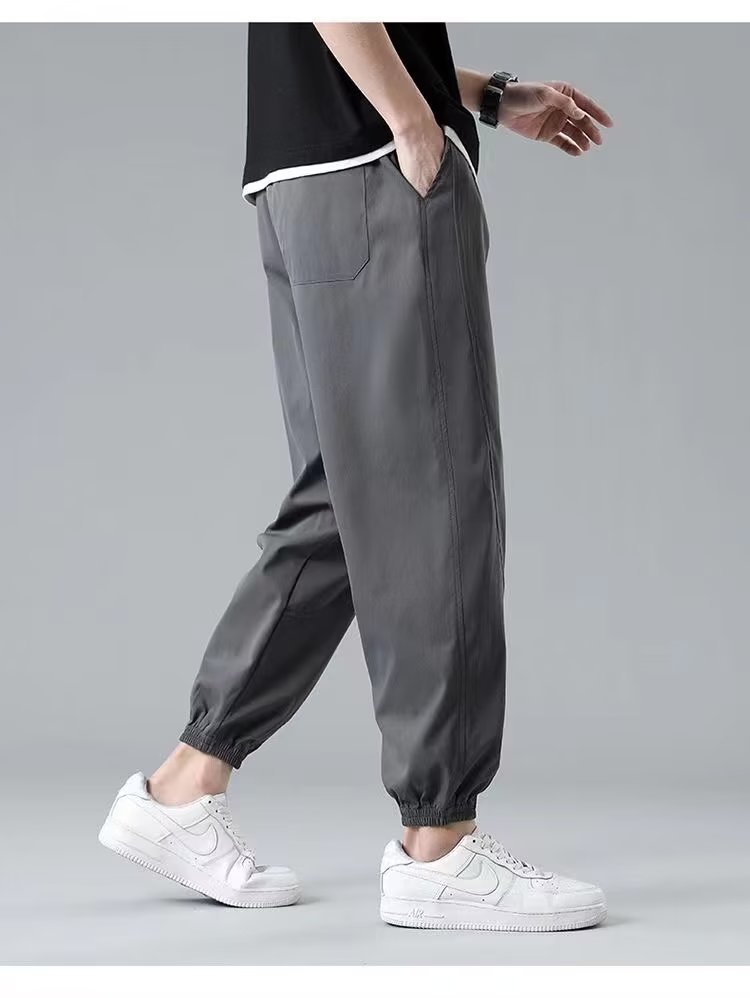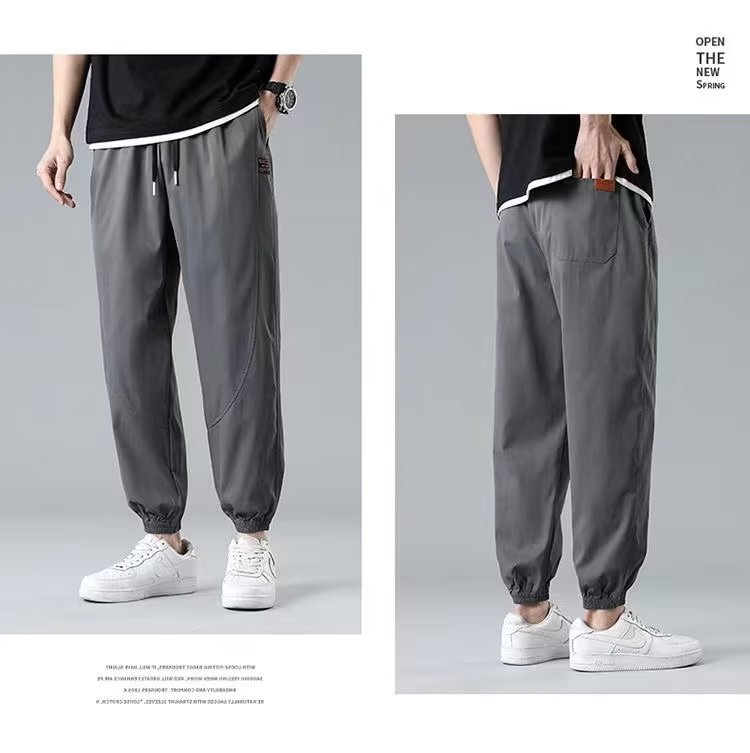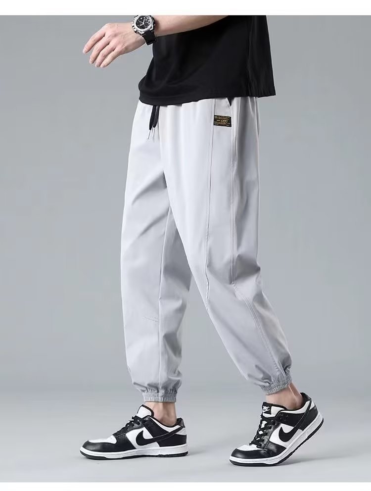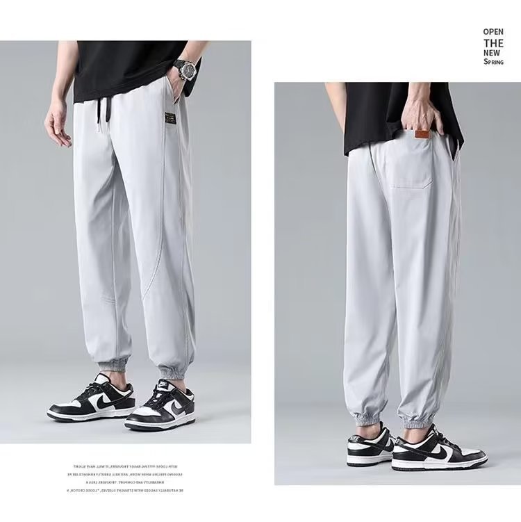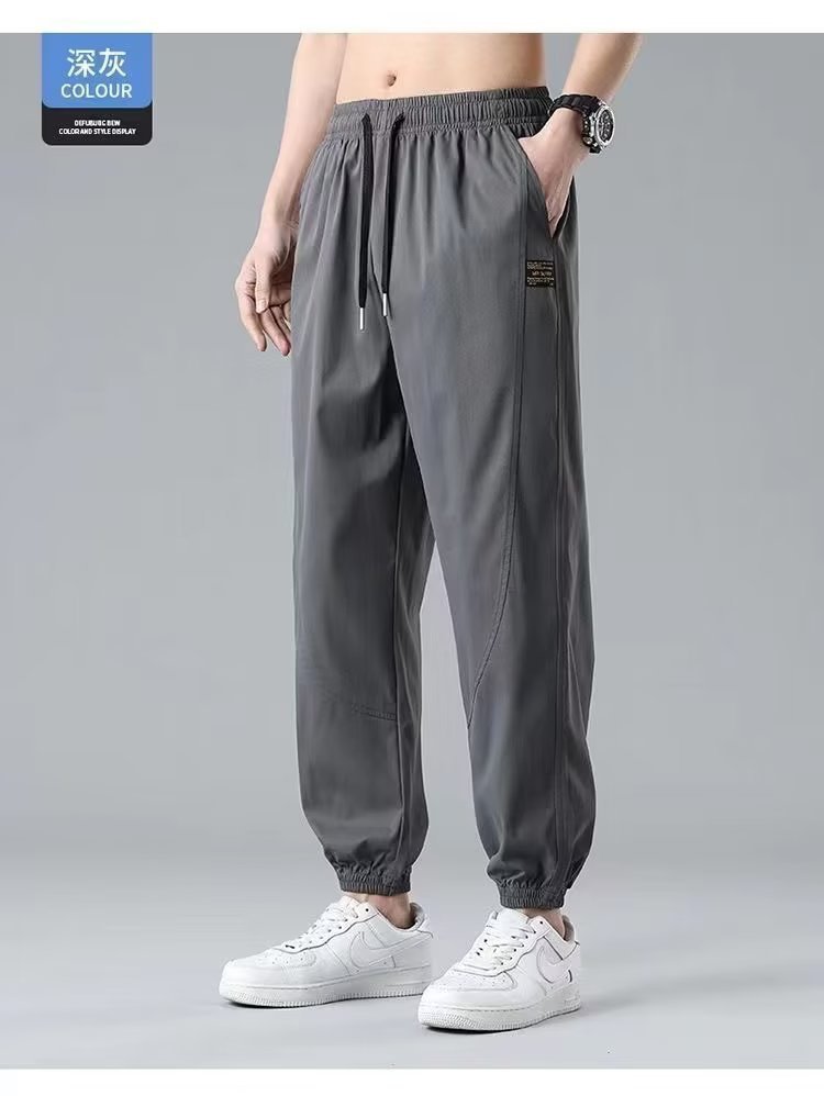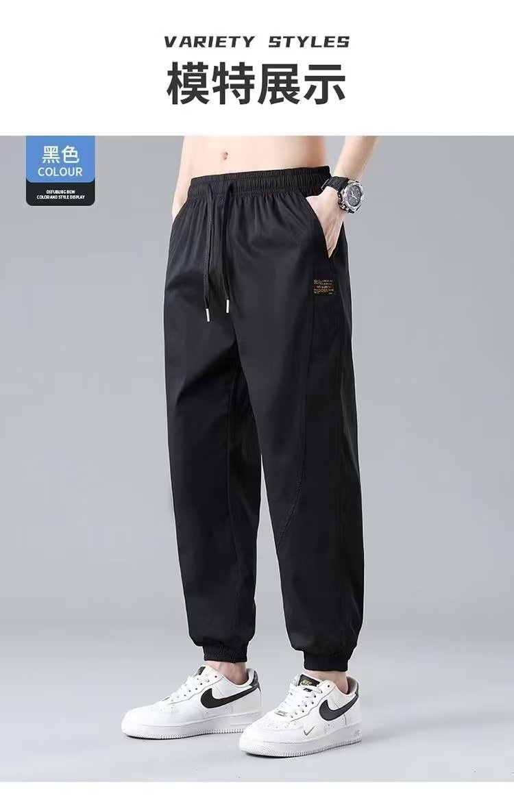 2025新型夏の氷糸弾力ズボン男性の薄いファッションブランドのストレートでゆるい運動レジャーズボン