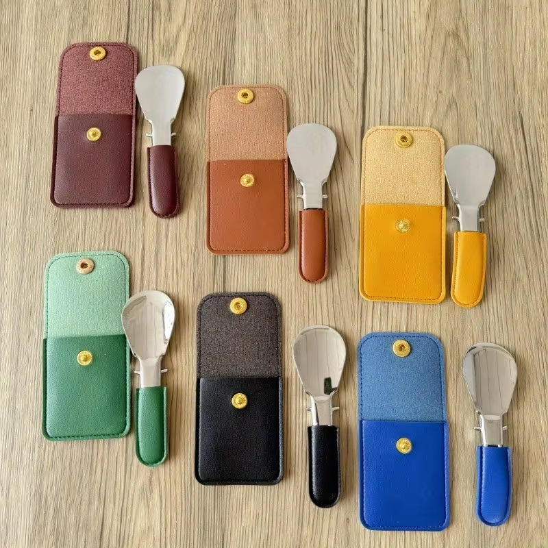 トラベルシューズ用収納バッグセット、折りたたみ式ステンレス製靴べら、PUレザー靴べらバッグセット、カバーポケットスタンド