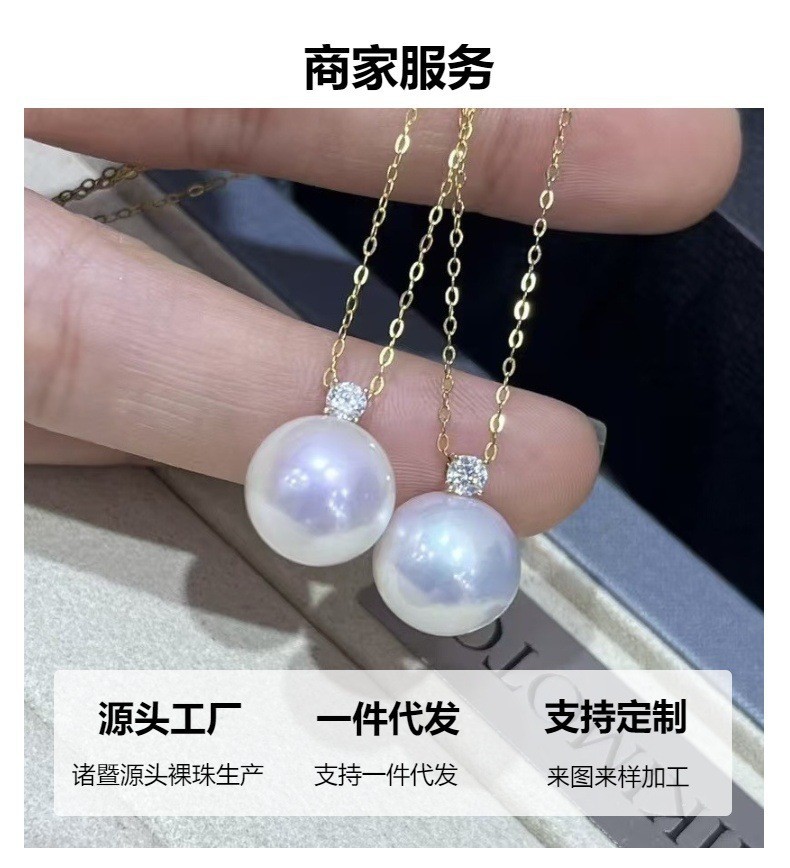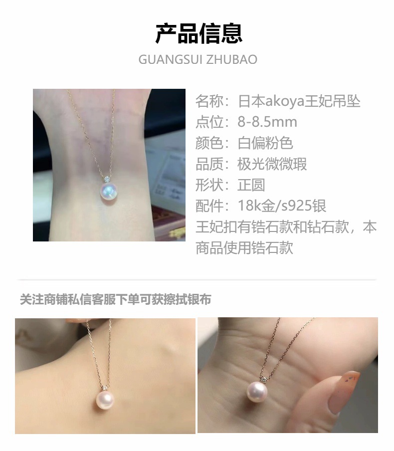 日本天然海水akoya珍珠吊坠18k金瓜子扣8-9mm正圆极光经典颈链