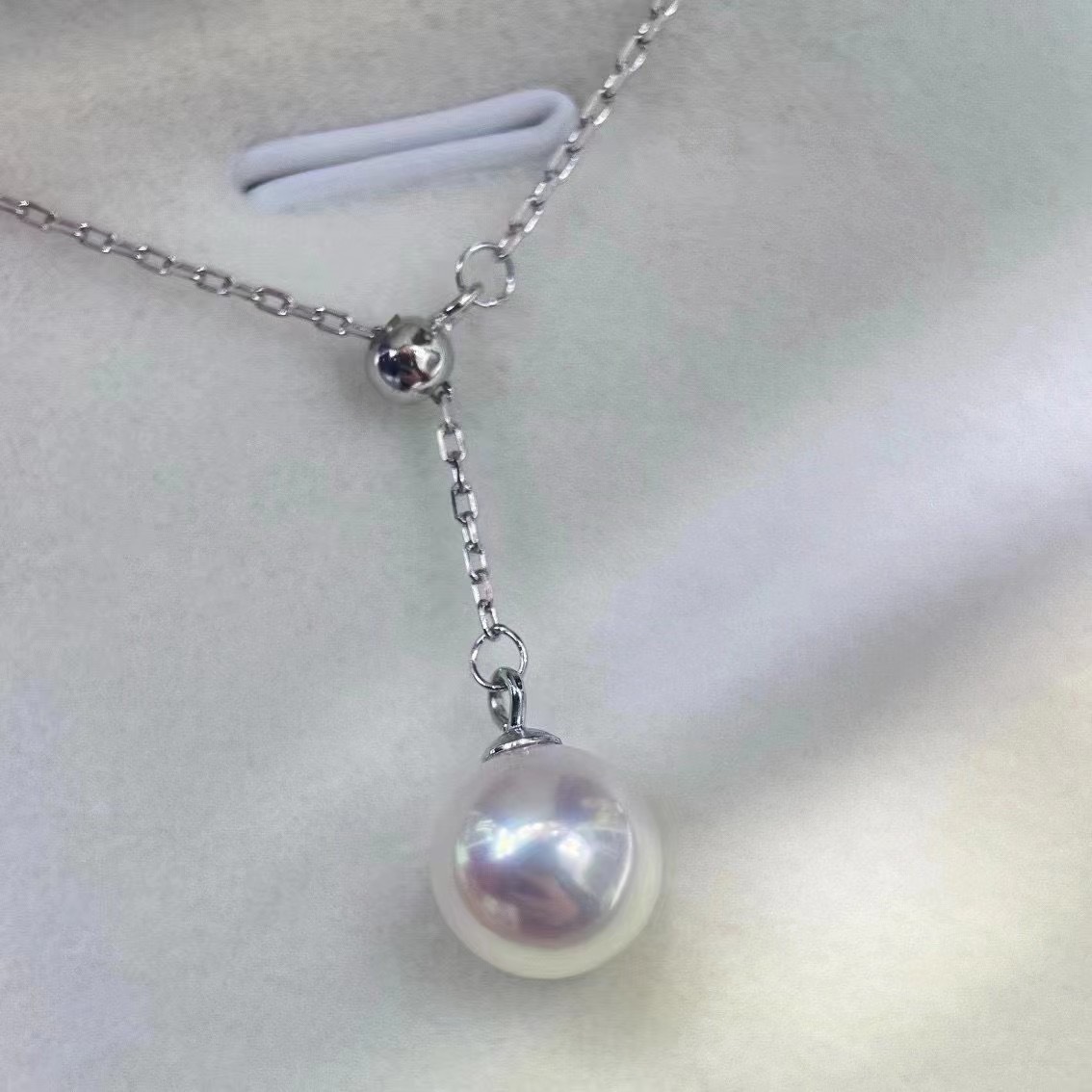 日本akoya天然海水真珠Y字鎖真円極強光真珠ペンダントは天女光に匹敵する