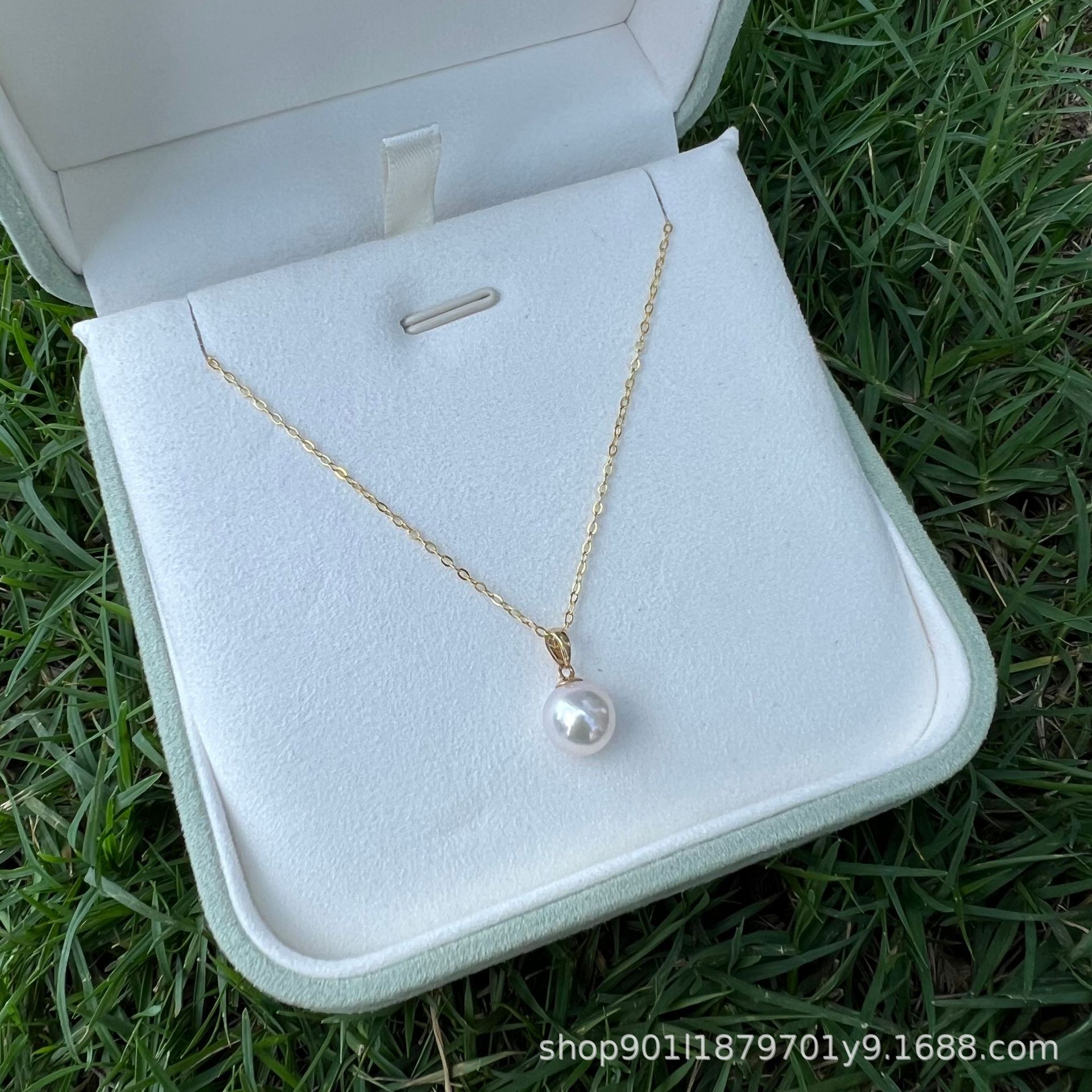 天然海水akoya戴妃金真珠ペンダントネックレス8-9mm正円オーロラネックレスg 18k金鎖骨鎖