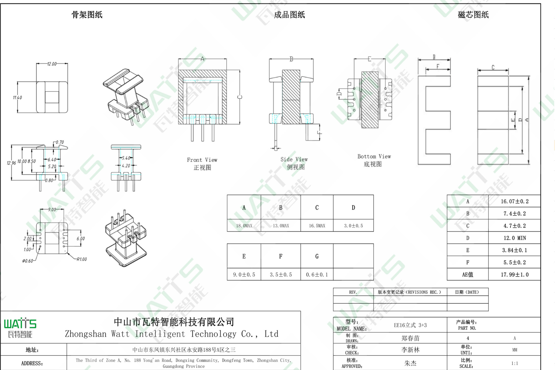 EI16-12変圧器インダクタンスEI1612はEE14より幅が広い針距離がEE14の他と同じである