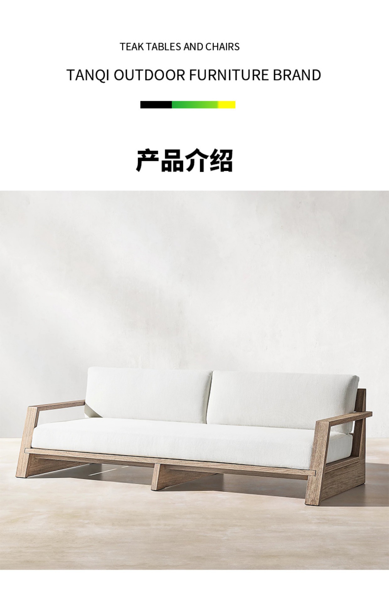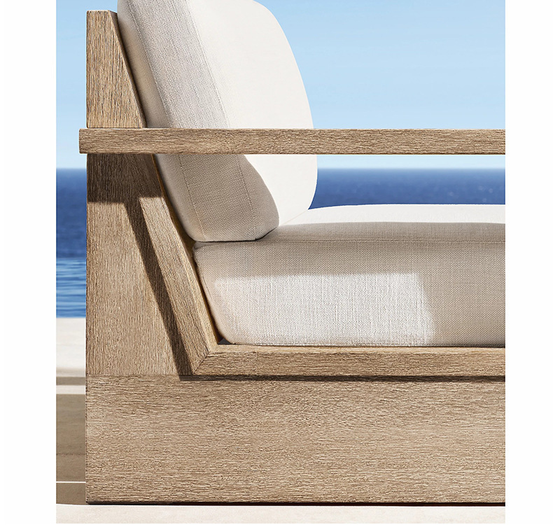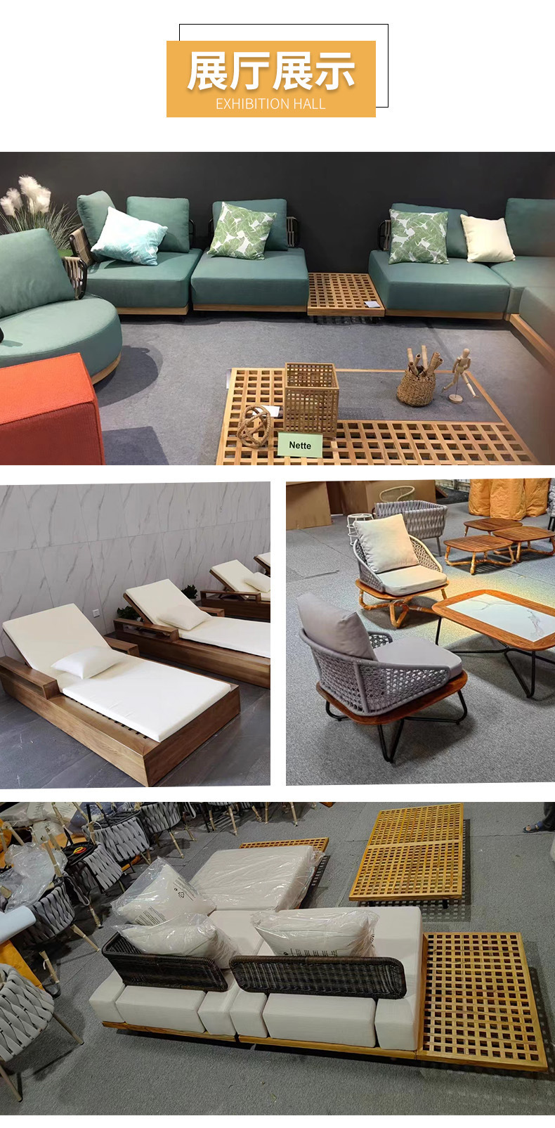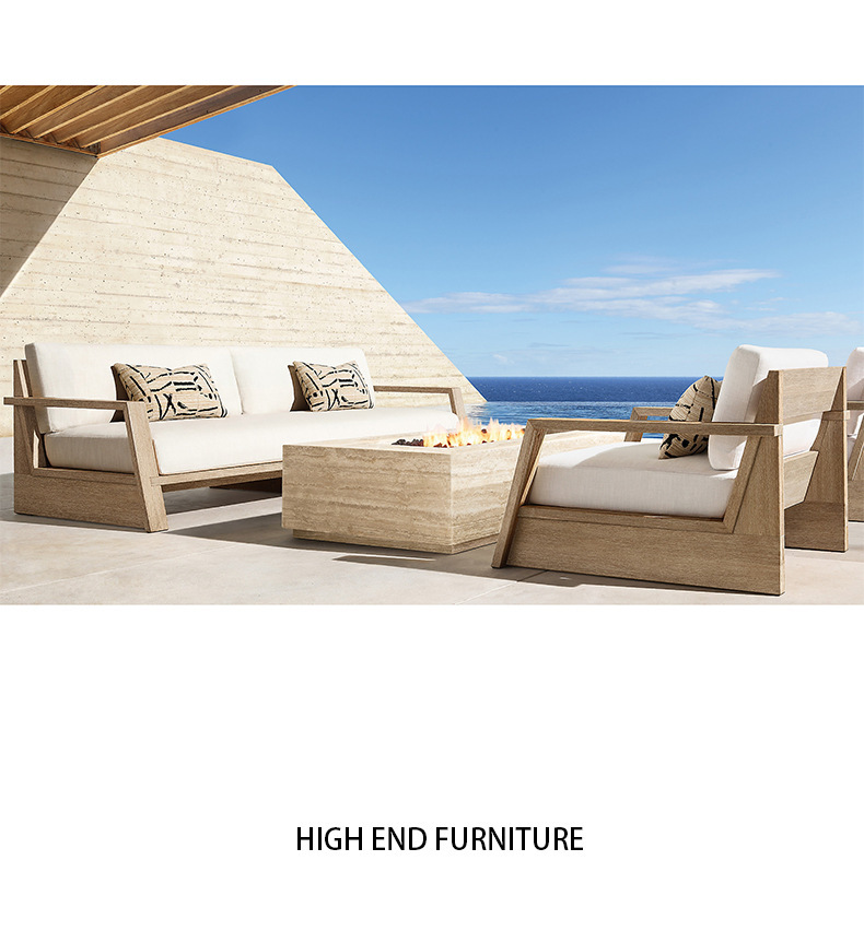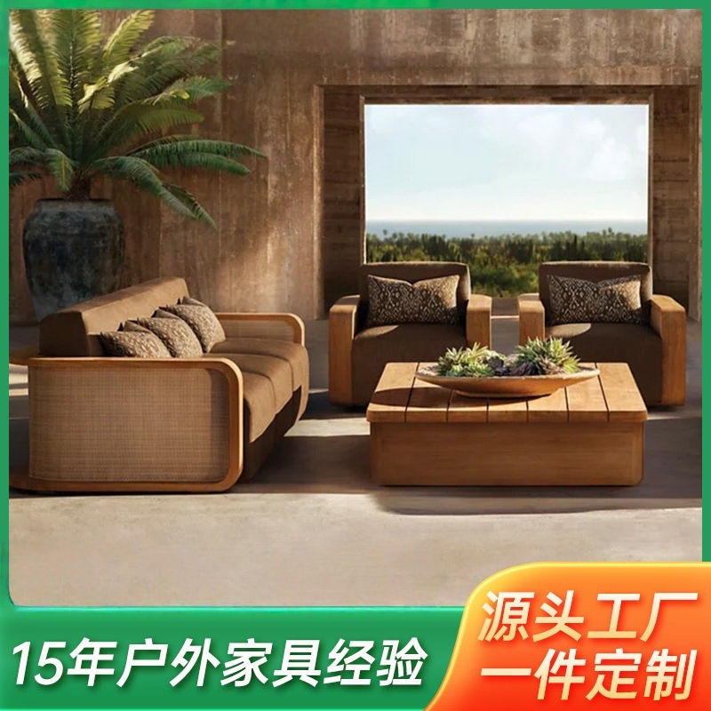 屋外チークソファ防水日焼け止めヴィラ中庭ガーデンホテル北欧テラス防食無垢材ソファコーヒーテーブル