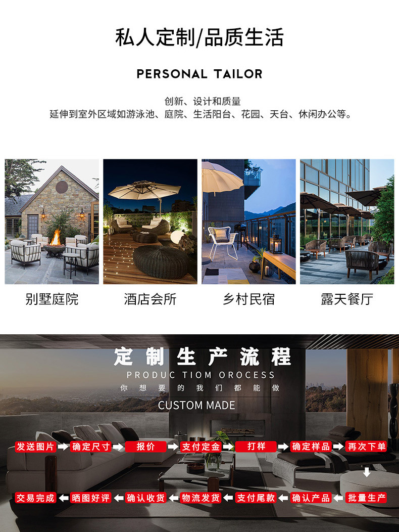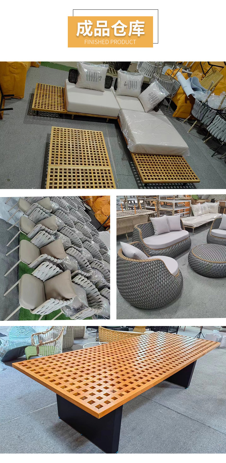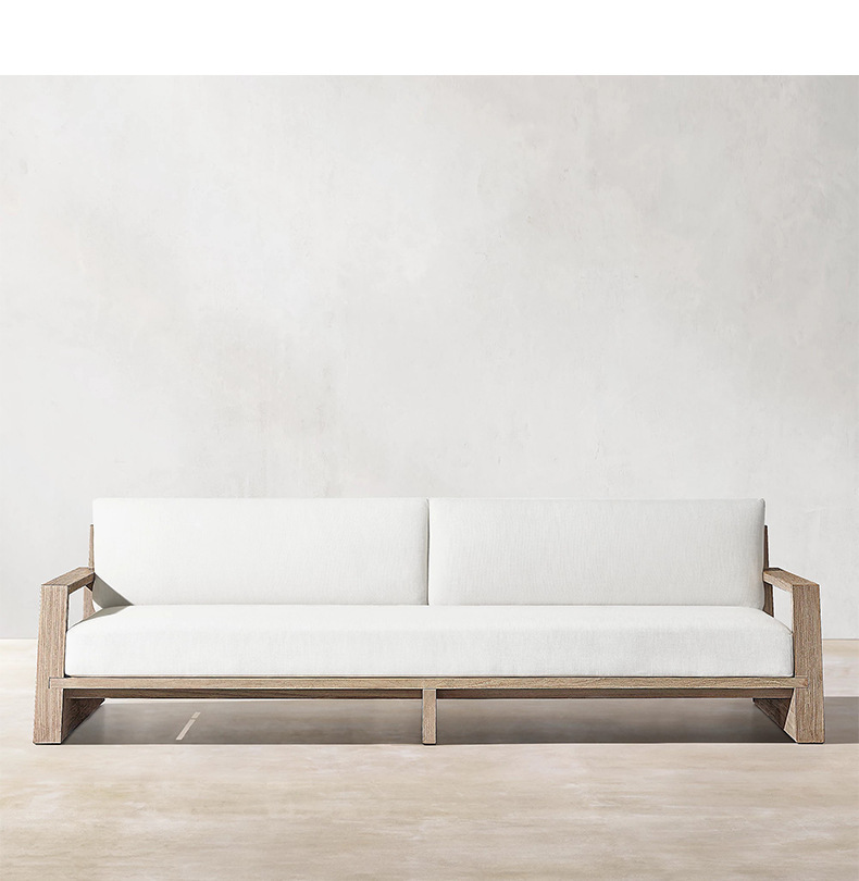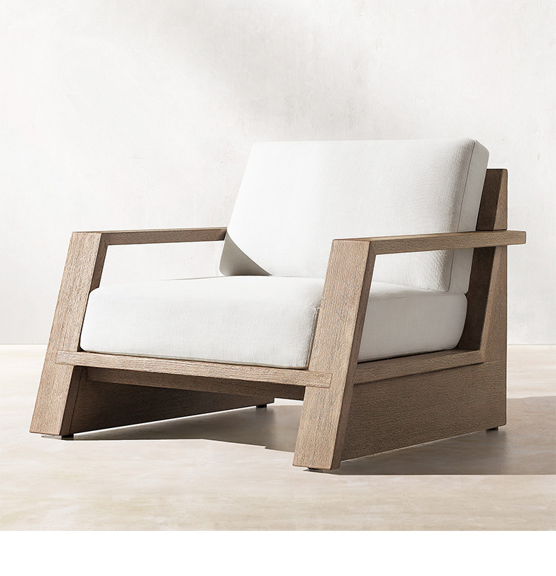 屋外チークソファ防水日焼け止めヴィラ中庭ガーデンホテル北欧テラス防食無垢材ソファコーヒーテーブル