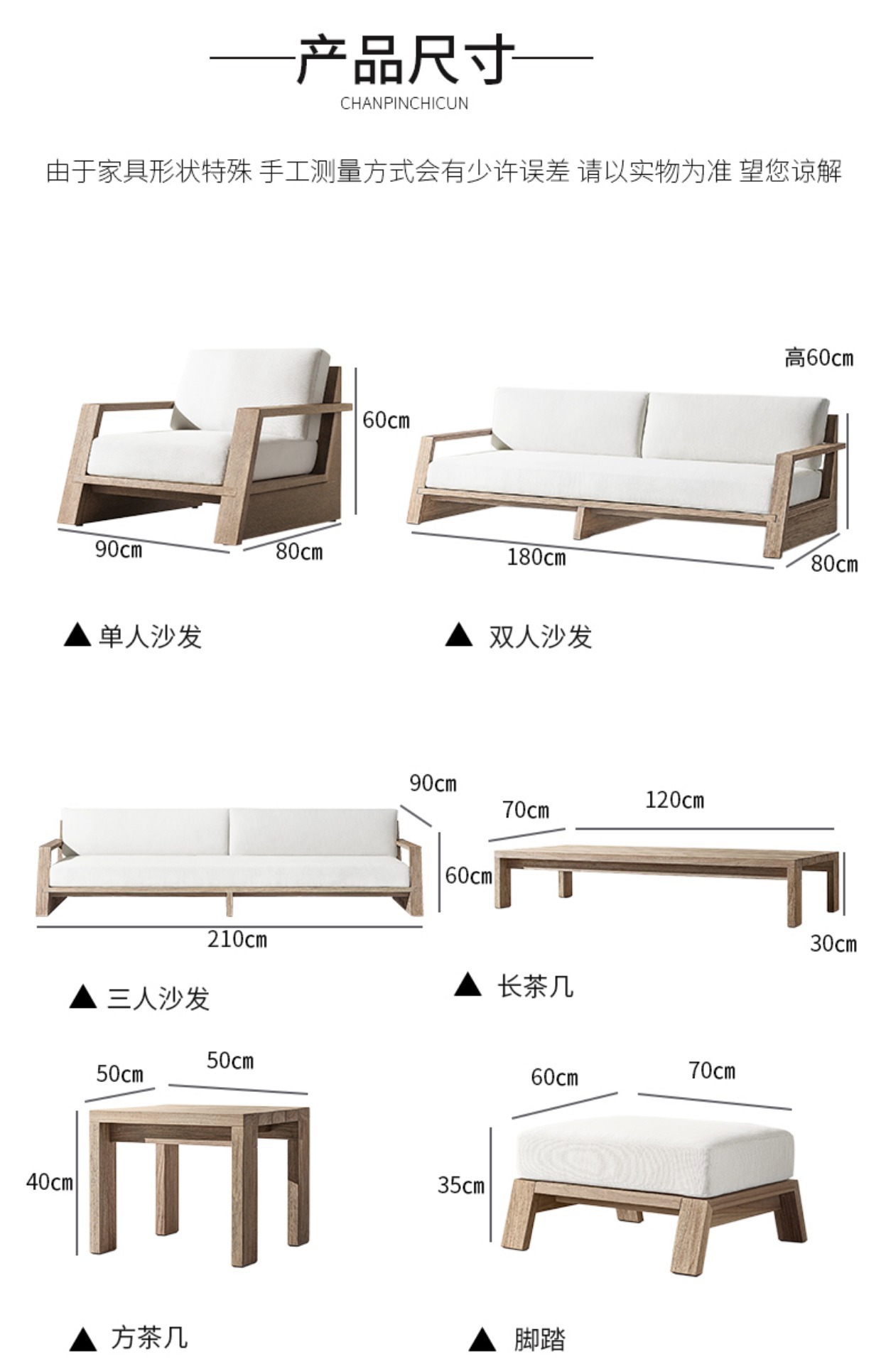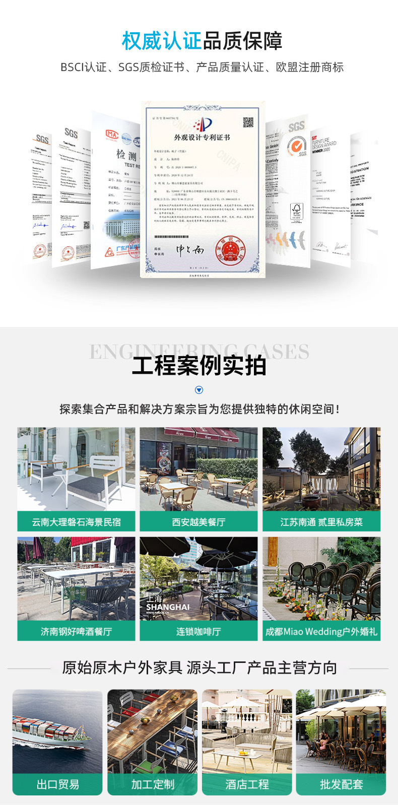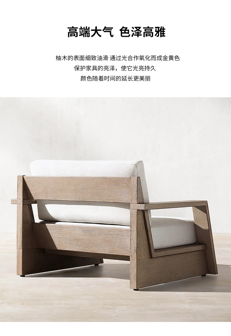北欧屋外実木ソファー庭園防水日焼け止め露天ホテル民宿屋外レジャー柚木ソファーセット
