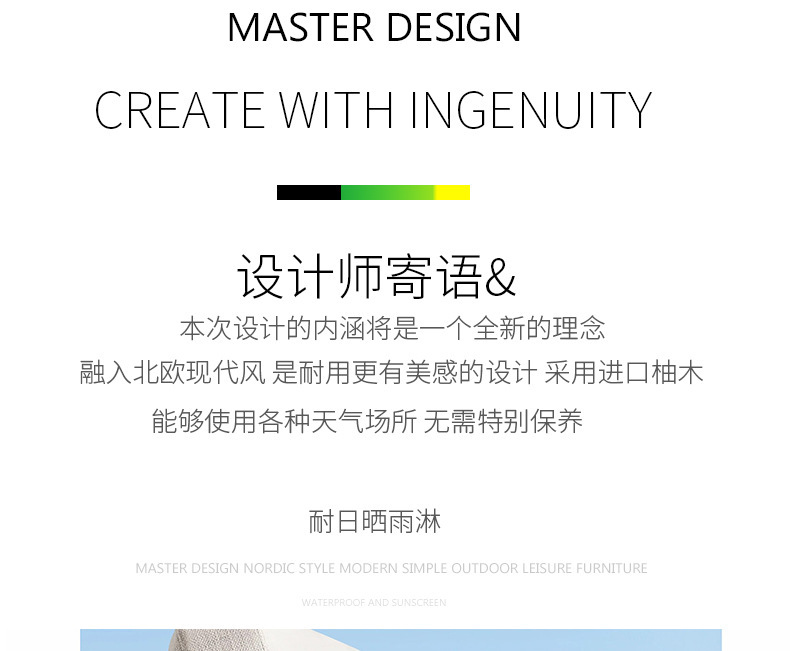北欧屋外籐編みベランダテーブル椅子レジャー庭園屋外別荘花園チーク組合せ防水日焼け止め家具