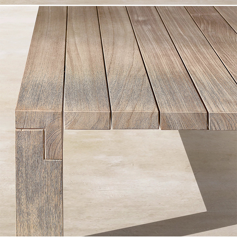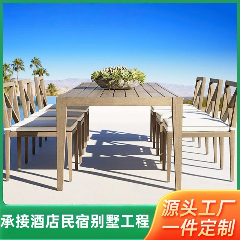 屋外チークテーブルと椅子ホテルヴィラ屋外バルコニー防食日焼け止め中庭レジャーコーヒーテーブル無垢材テーブルと椅子の組み合わせ