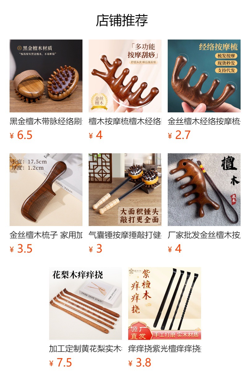 白檀マッサージコーム、経絡コーム、天然健康木製コーム、女性家庭用腱コーム、ソース工場卸売、発送可能