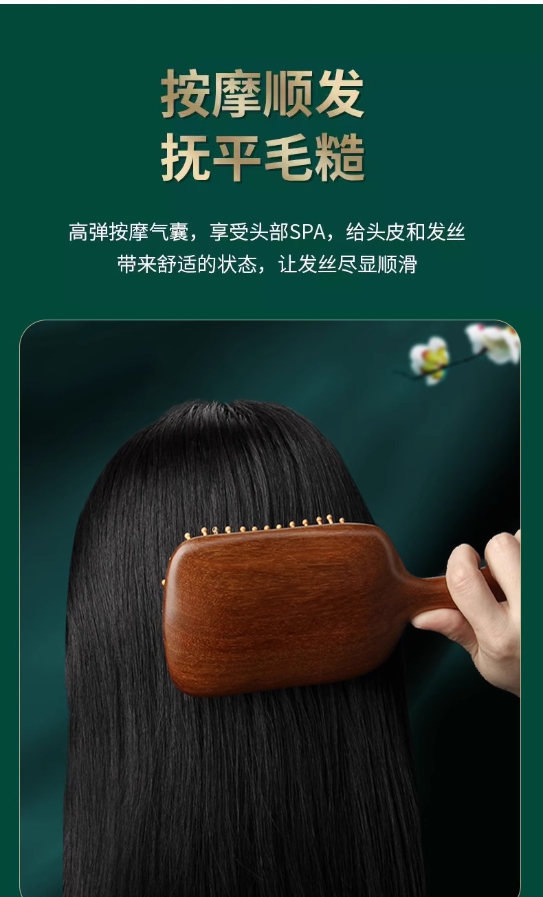 檀木大方头部经络按摩气垫梳蓬松气囊梳实木美发梳子