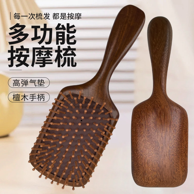 檀木气垫梳子防静电蓬松按摩头部经络梳家用女士专用气囊木梳代发