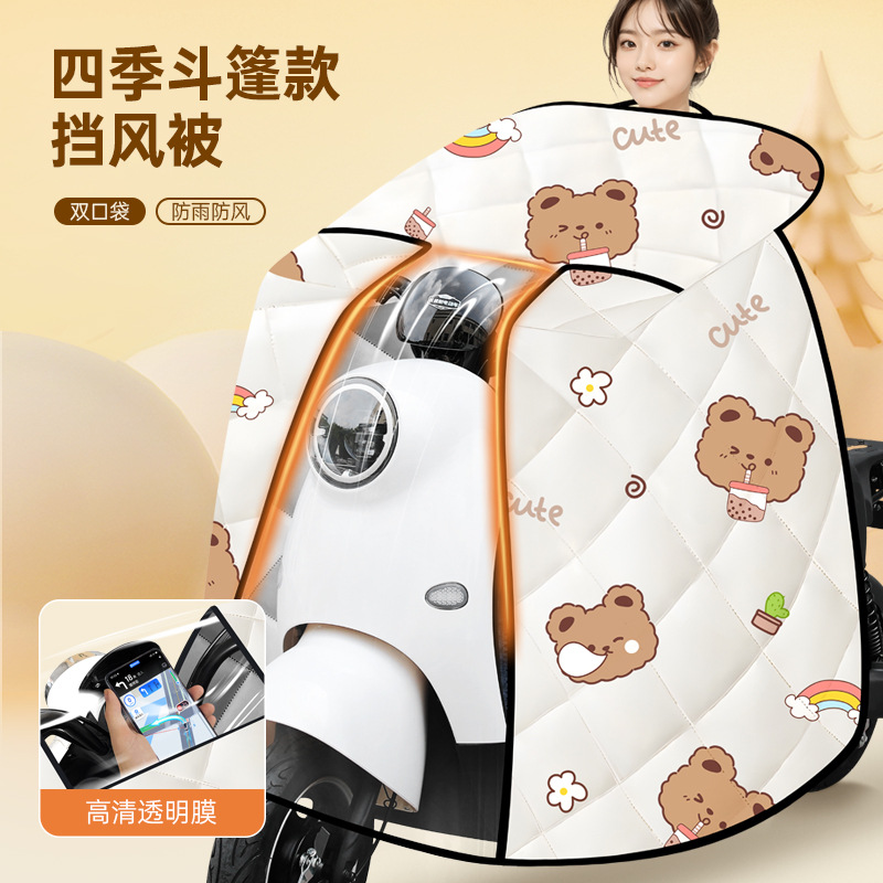 新しい電気自動車フロントガラスキルト冬プラスベルベット肥厚女性の小型バッテリーオートバイ冬防風と防寒カバー