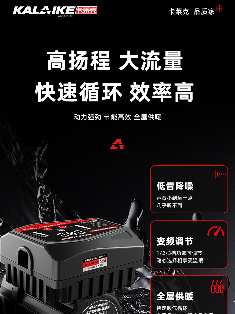 デジタル温度制御永久磁石インバータ循環ポンプ家庭用静音地暖管路温水加圧ポンプ直流暖房ポンプ