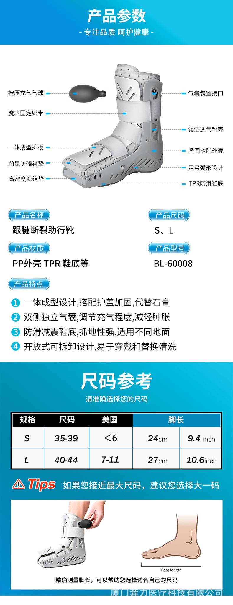 奔力亚马逊热销款助行跟腱靴踝关节固定护具运动康复护踝现货批发