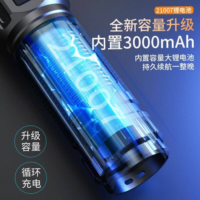 国境を越えた屋外パトロール集光遠射強光懐中電灯デジタル充電帯出力伸縮ズーム懐中電灯卸売り