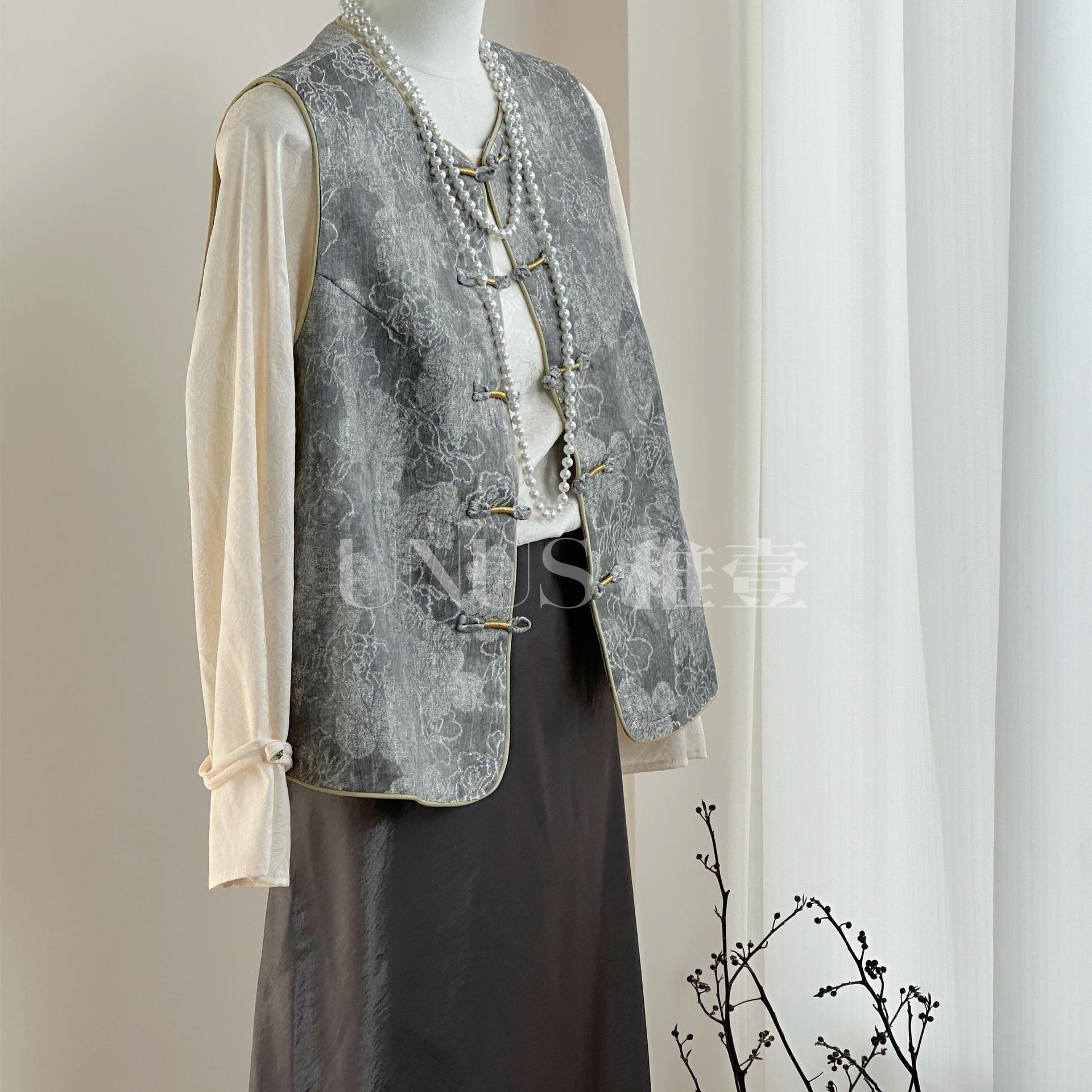 新中国式馬甲の新型レトロなバックルベストの外に大きいサイズの国風を着て、高級感があります。