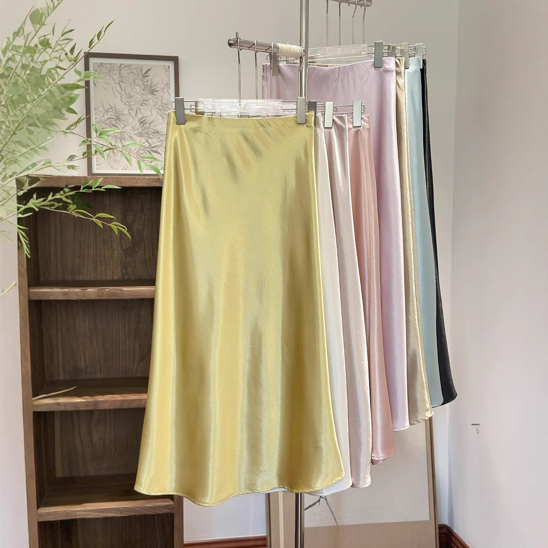 新中国風の基本モデルは酢酸ストラップワンピースの女性春の夏の気質の高級感のあるサテンのロングスカートを合わせます。
