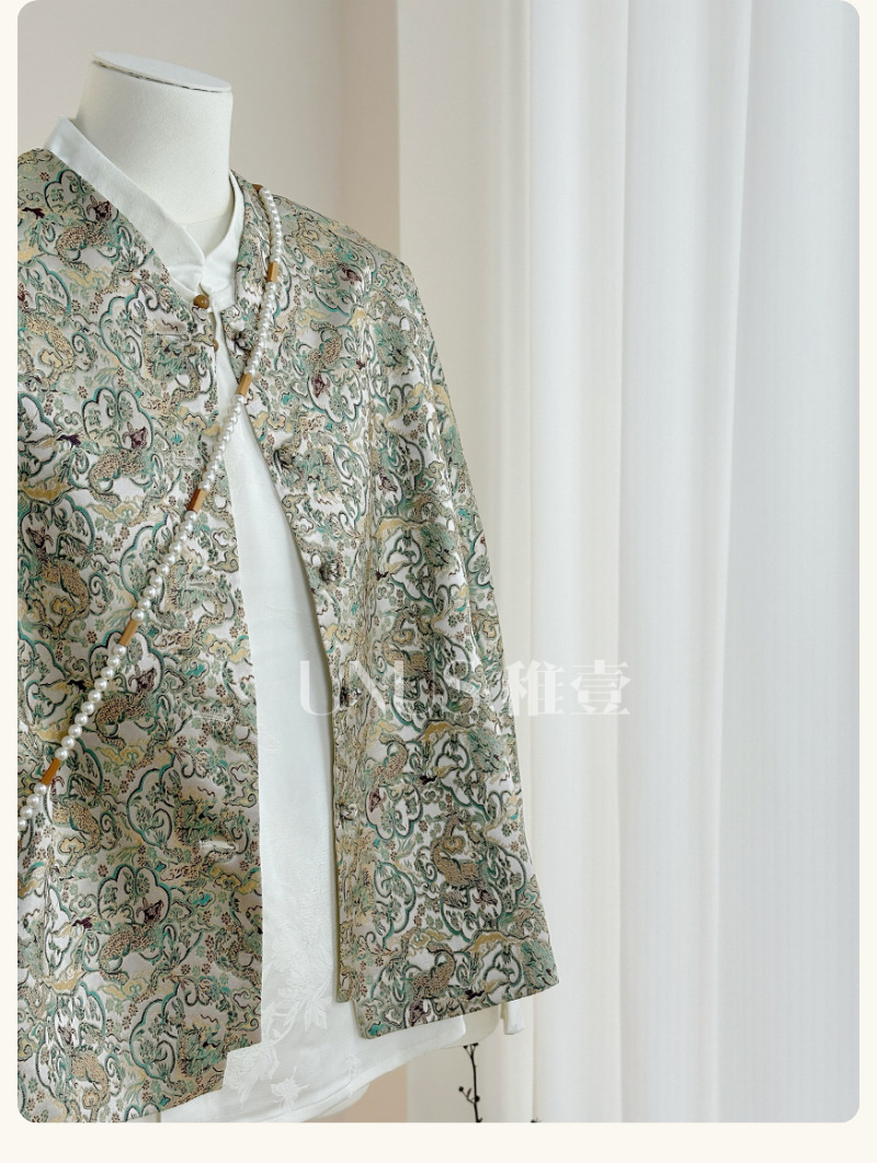 UNUS稚壱立体ジャカード盤ボタン復古端正大気唐装新中国式コート国風先祖母緑白