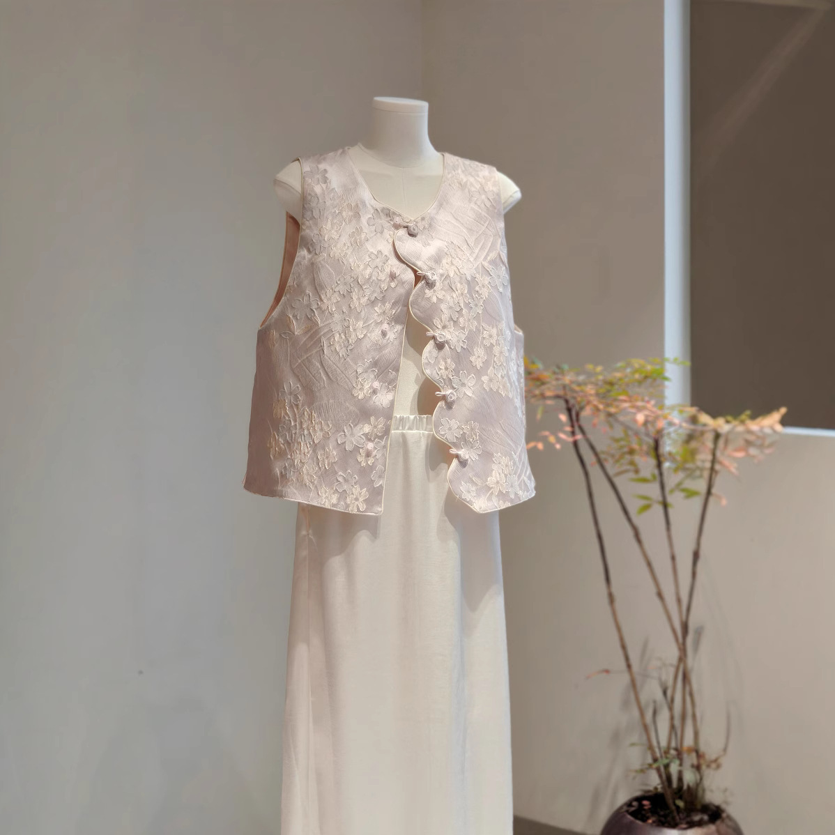 【知合堂】新中式国风马甲中长款精致刺绣上衣2025秋叠穿马夹5860