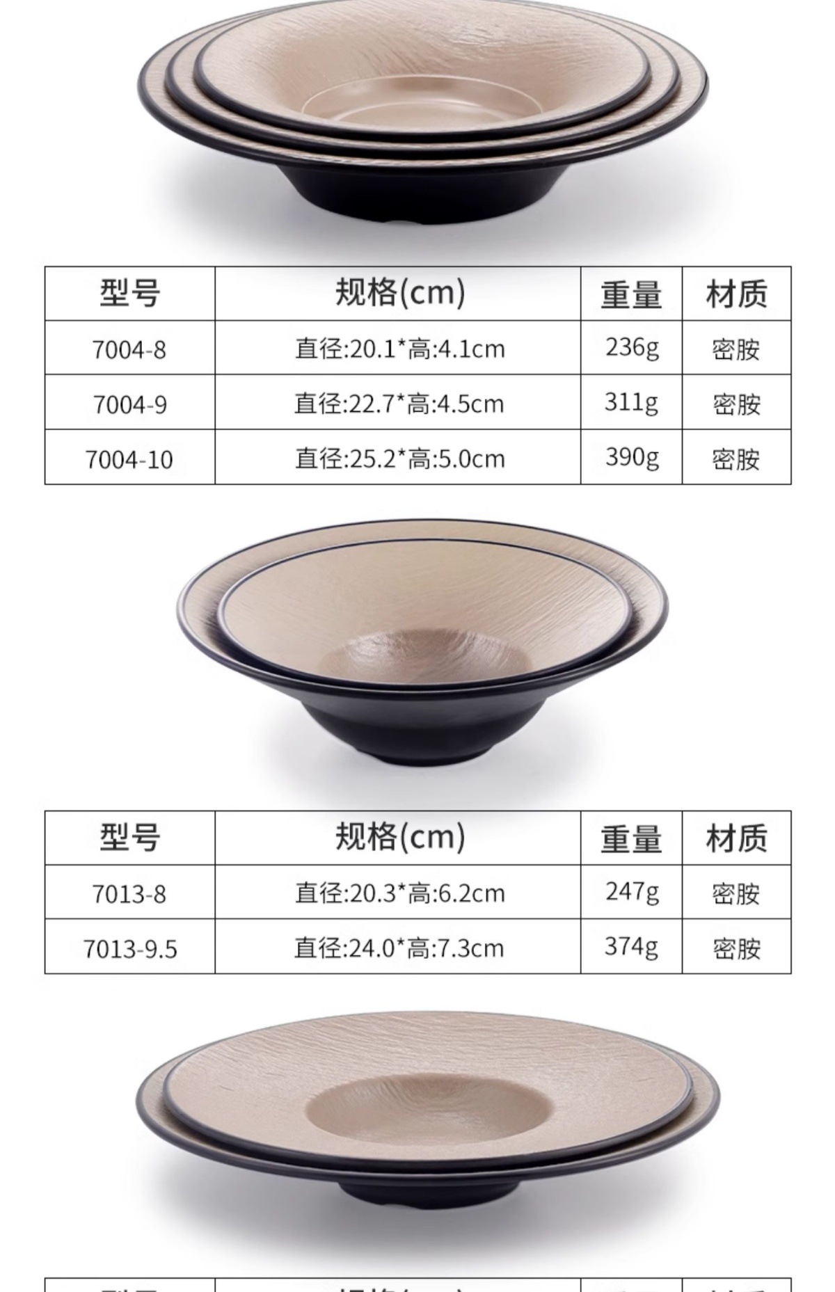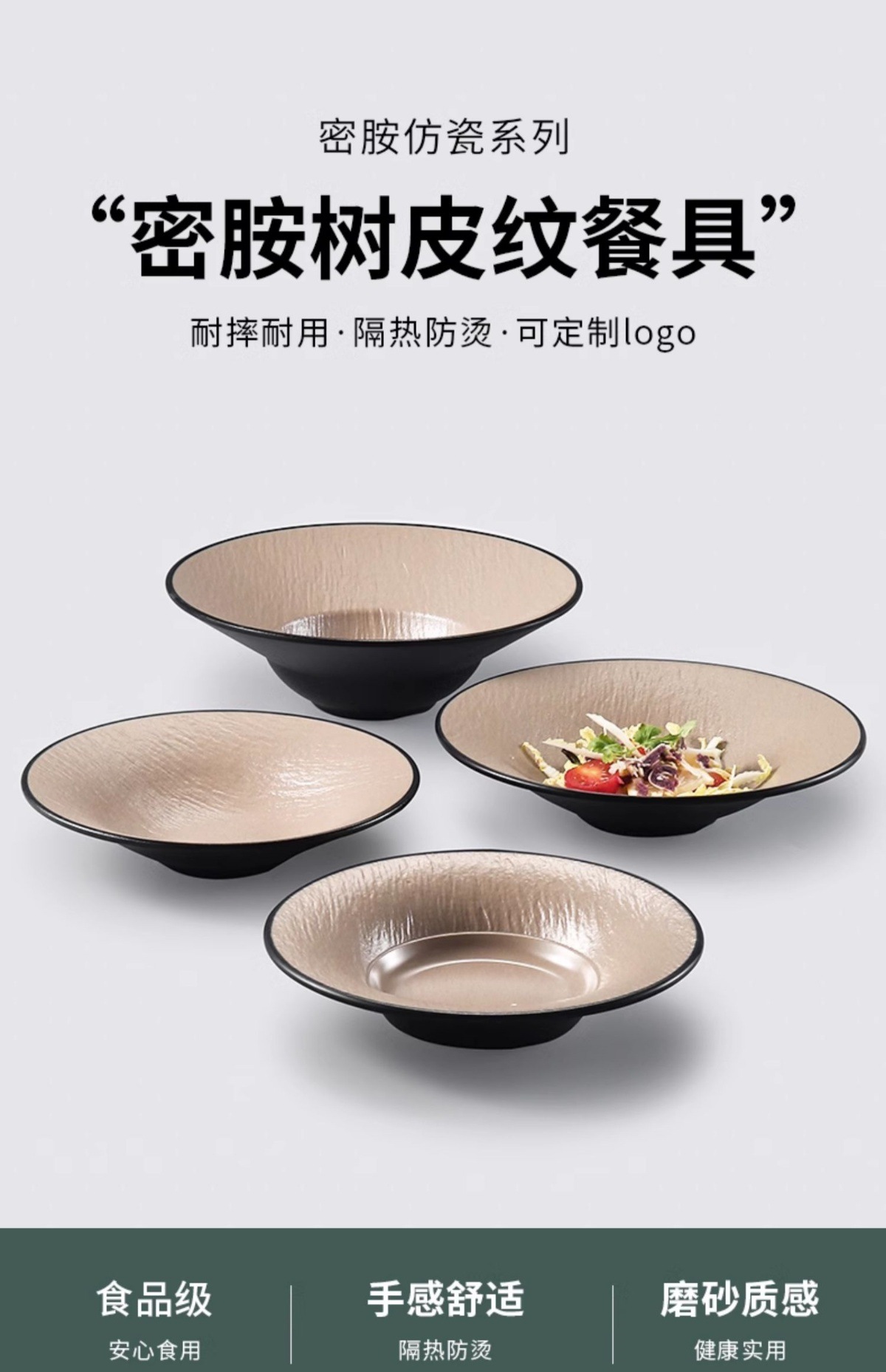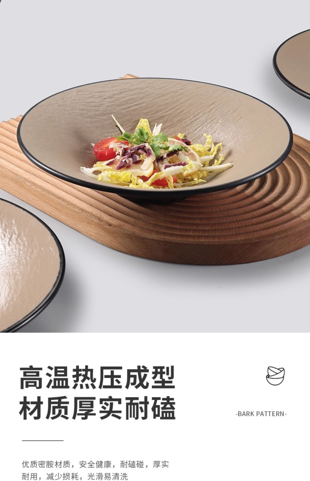 台徳メラミン食器は磁器の裏口のプラスチックの深い皿の冷たい料理の皿の洋食の皿のスープの皿の麦わら帽子の皿をまねて商用します。