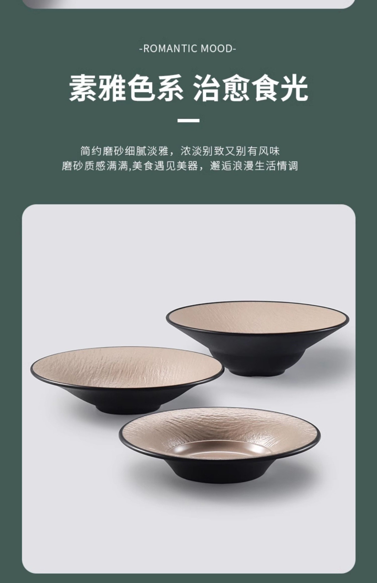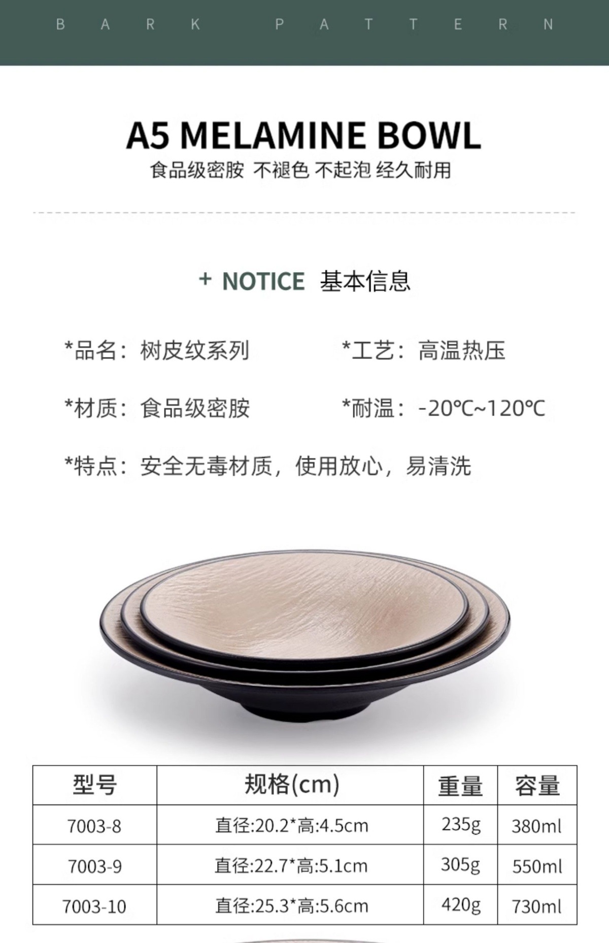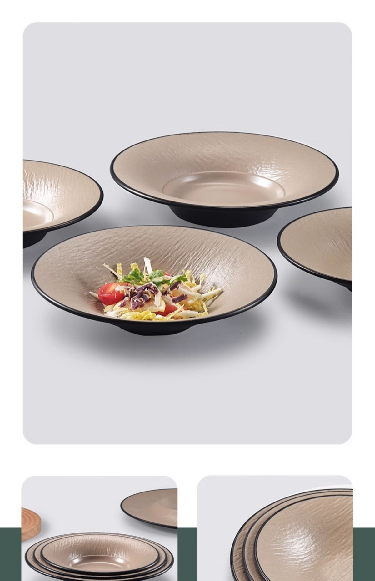 台徳メラミン食器は磁器の裏口のプラスチックの深い皿の冷たい料理の皿の洋食の皿のスープの皿の麦わら帽子の皿をまねて商用します。