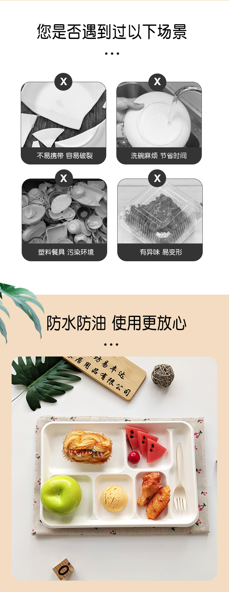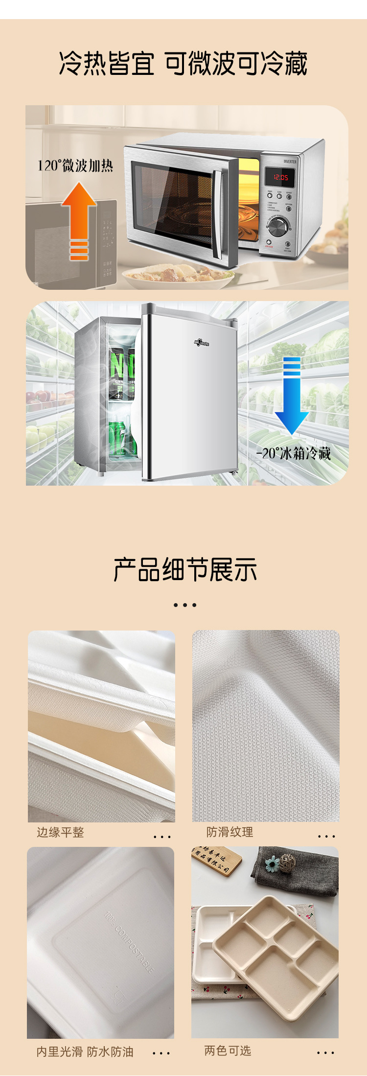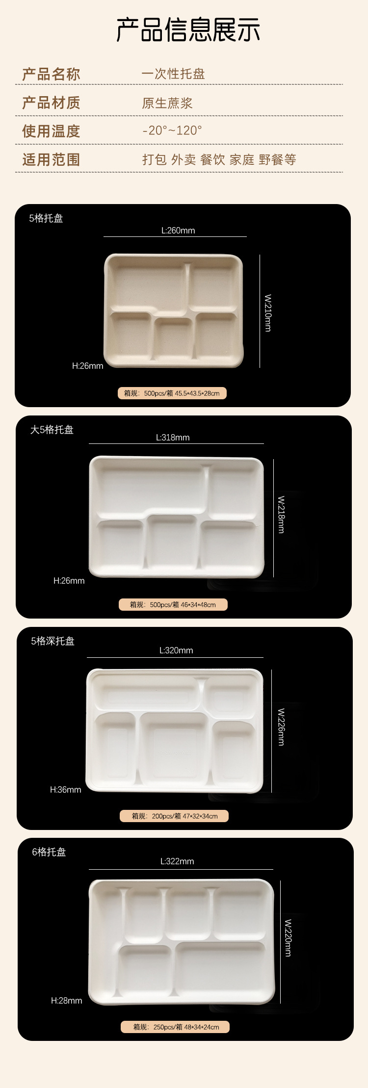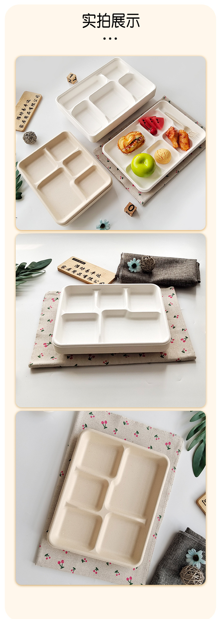 一次性可降解餐具五格六格托盘餐厅堂食专用托盘可加热5格6格餐盘