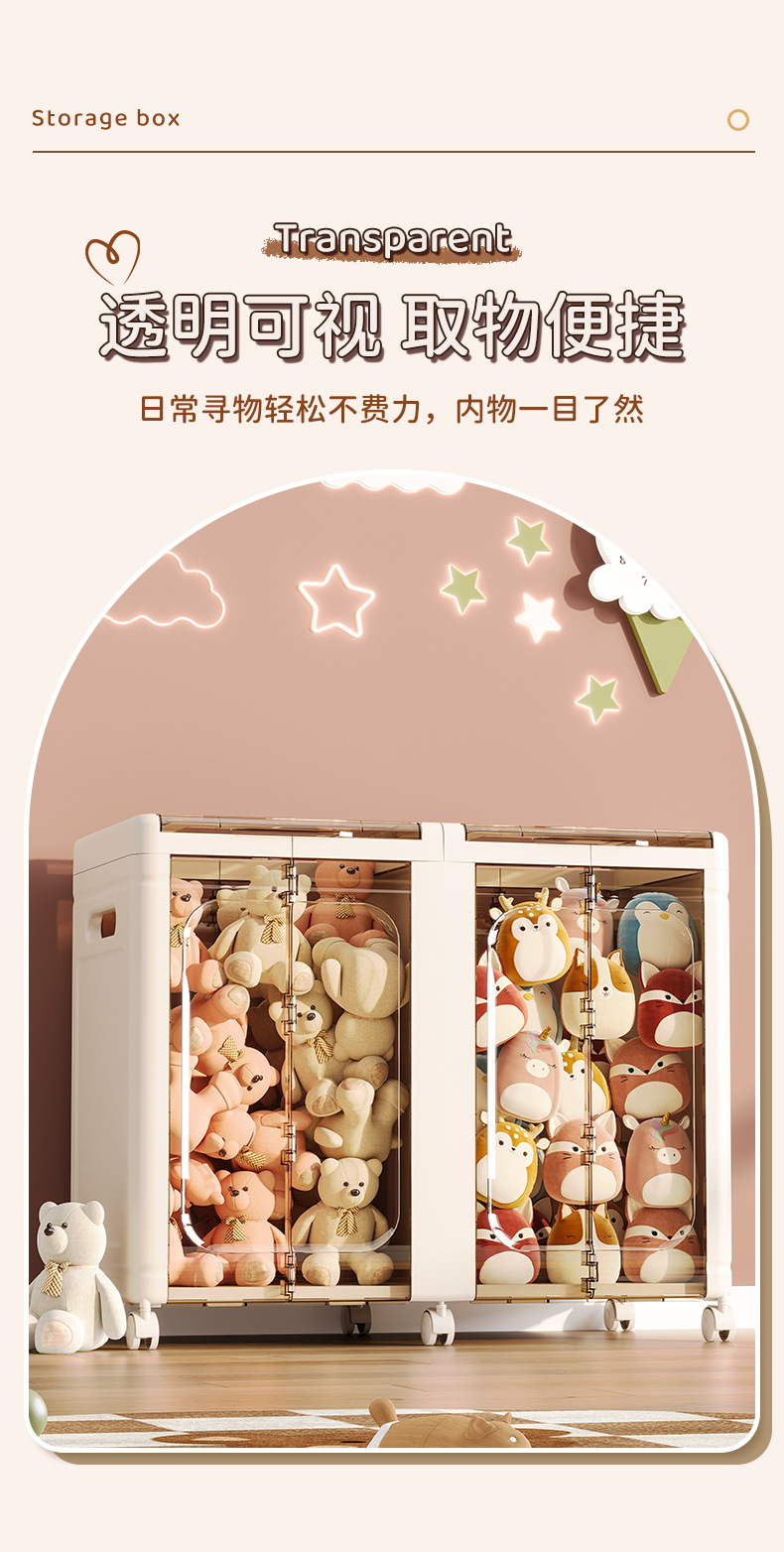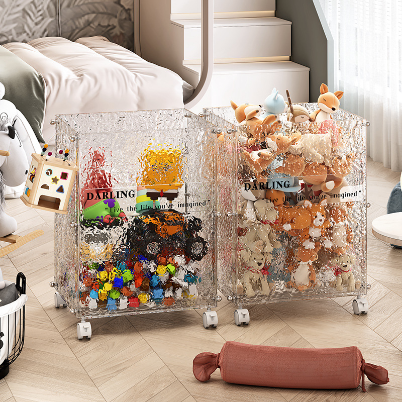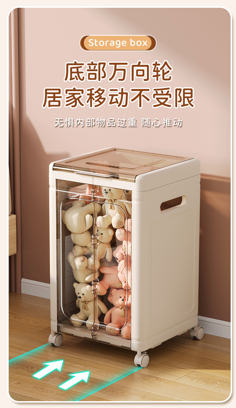 大容量透明收纳箱带轮玩偶收纳筐公仔毛绒玩具整理箱冰川纹