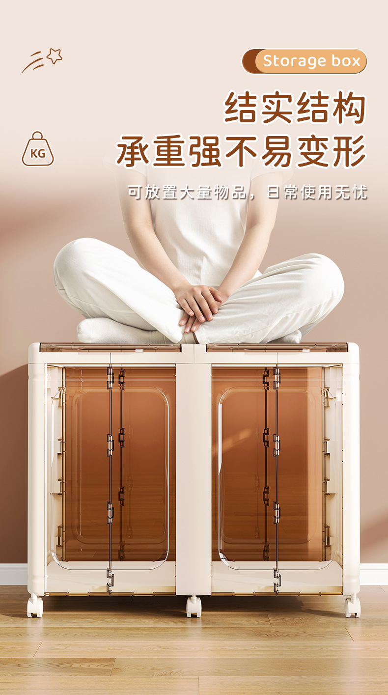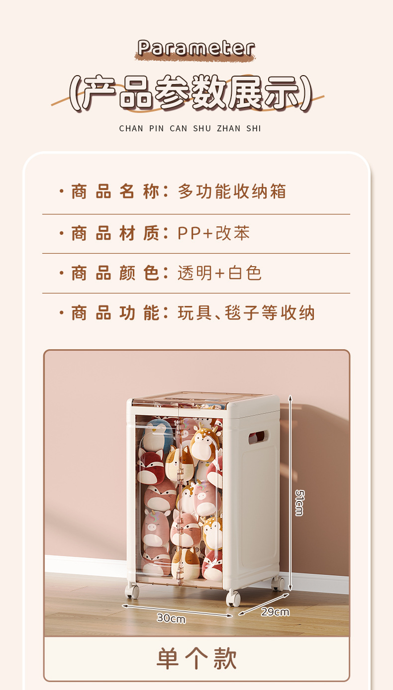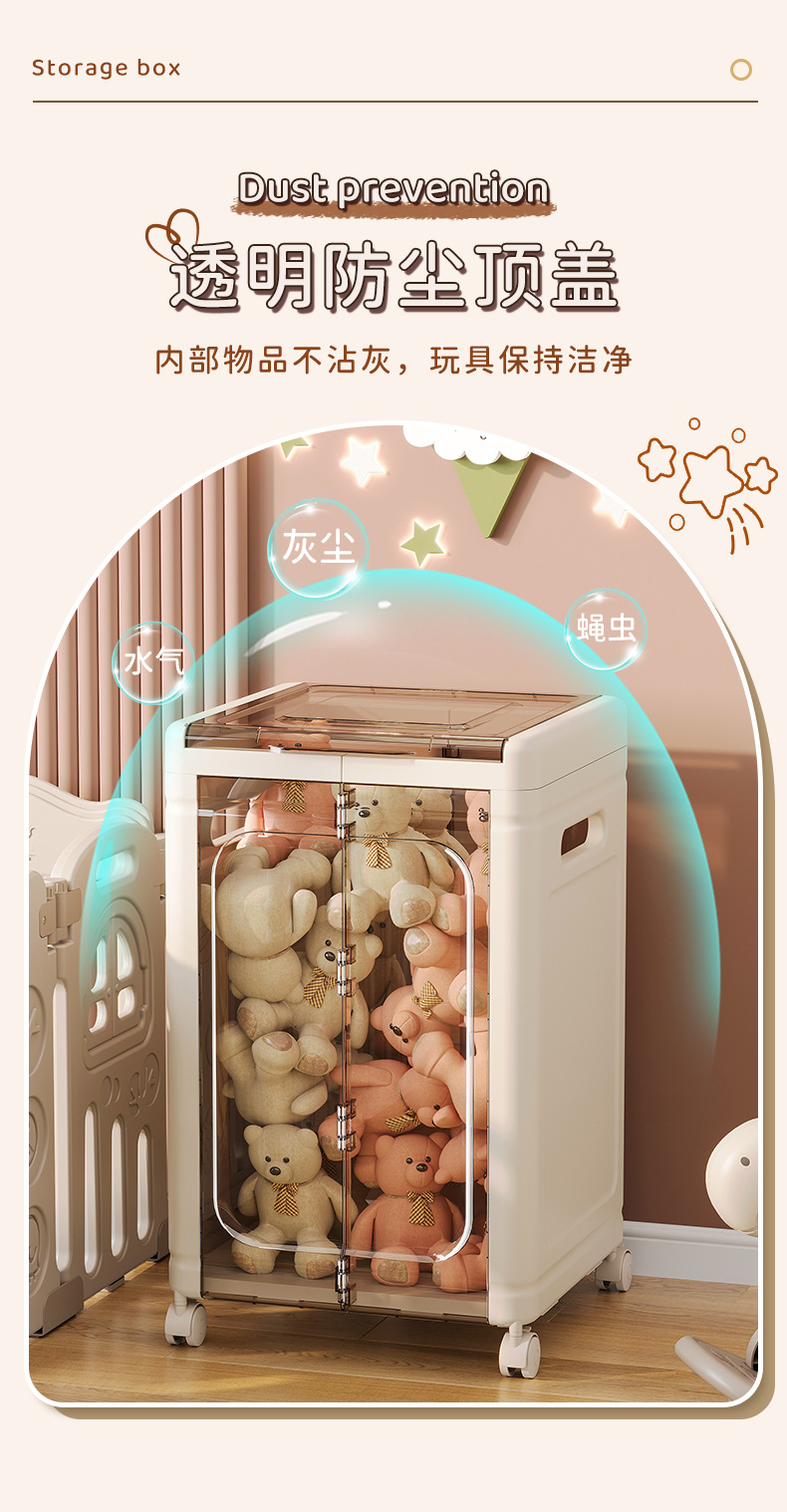 大容量透明收纳箱带轮玩偶收纳筐公仔毛绒玩具整理箱冰川纹