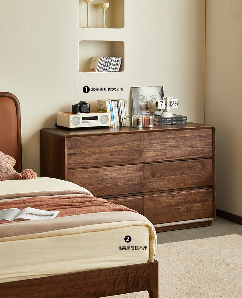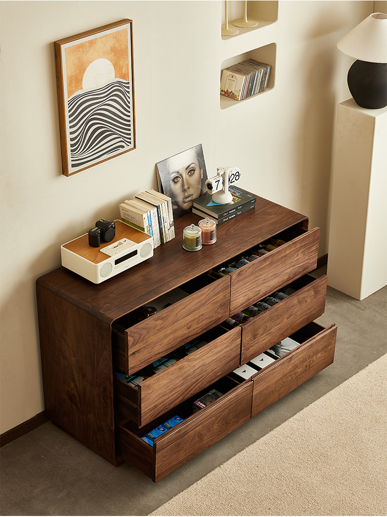 Yamoo北米黒胡桃木六斗戸棚北欧シンプル実木斗戸棚寝室収納収納収納引き出し戸棚