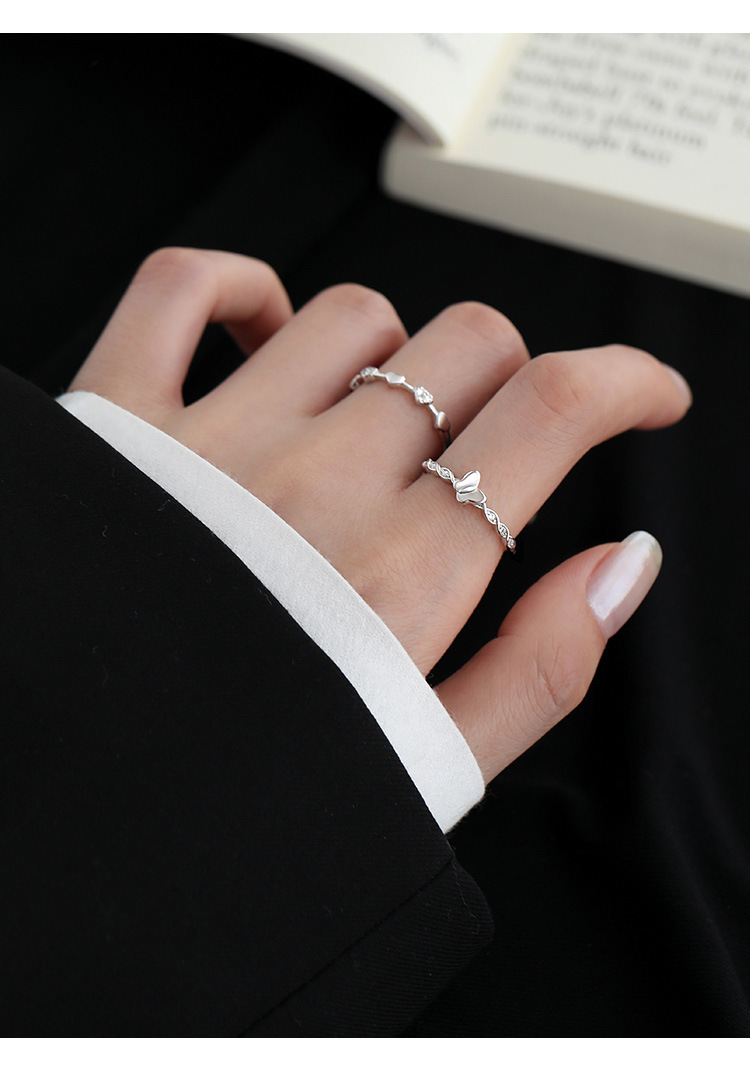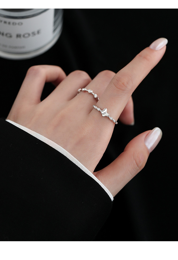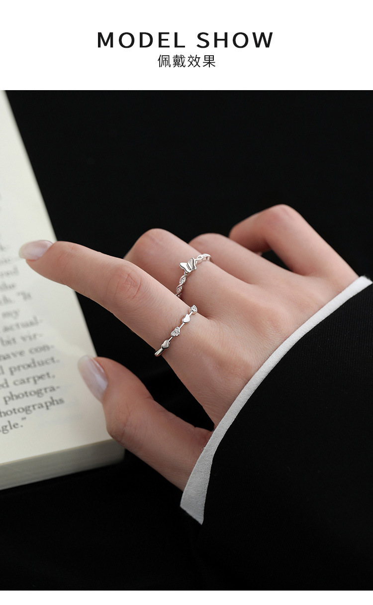 喜飾銀匠925純銀愛素輪指輪軽豪華食指戒女小衆高級感尾戒開口戒