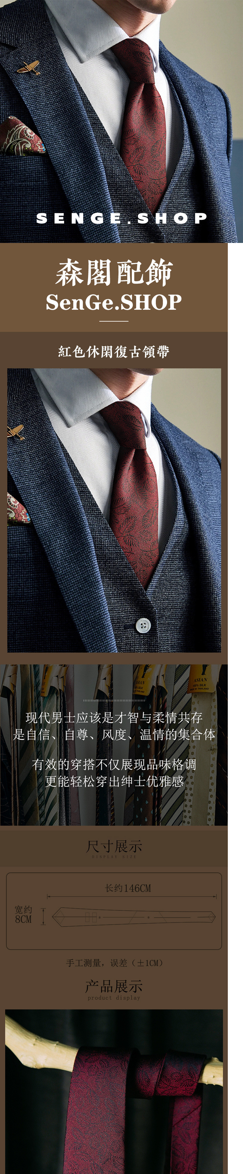 ネクタイ男レトロ花柄メンズ高级感シャツ幅8cm手打ち赤カジュアル新郎结婚スーツ