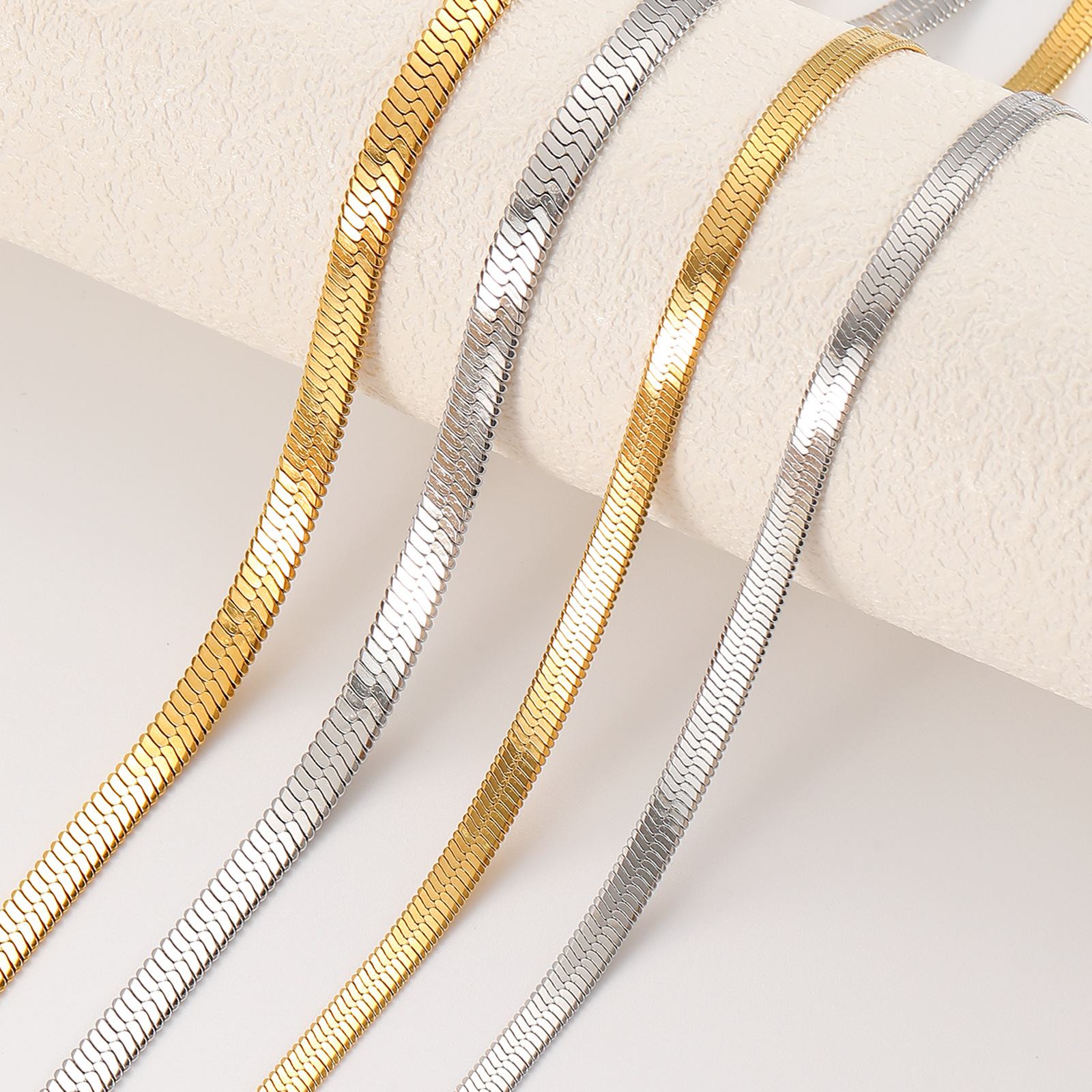 国境を越えてシンプルで冷たい風ステンレス蛇骨チェーンメッキ18k高級感男女スタイルの個性的な平蛇チタン鋼ネックレス