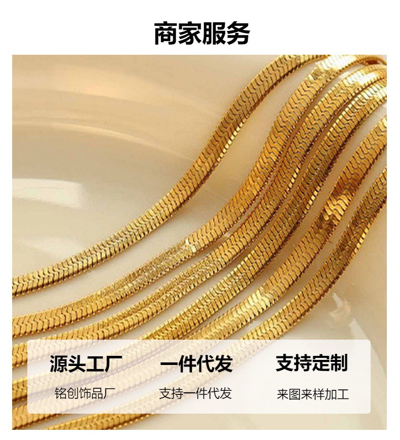 欧美跨境蛇骨项链女金色颈链高级感锁骨男小众18K 真空镀金刀片链