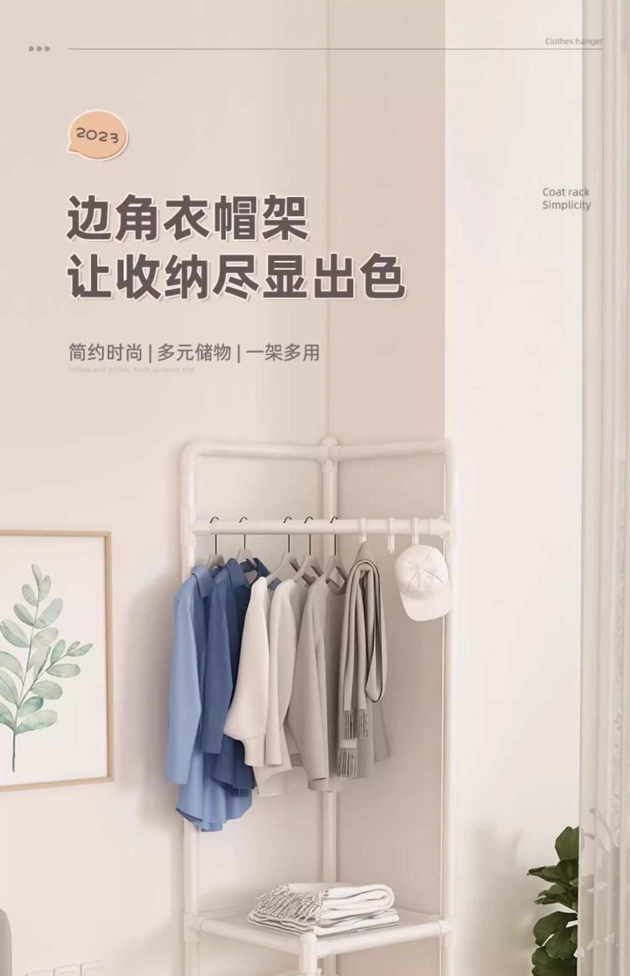 家庭用コートラック床置きコーナー多層収納ラック寝室コーナーコーナーベッドサイドバッグシンプルなコートラック