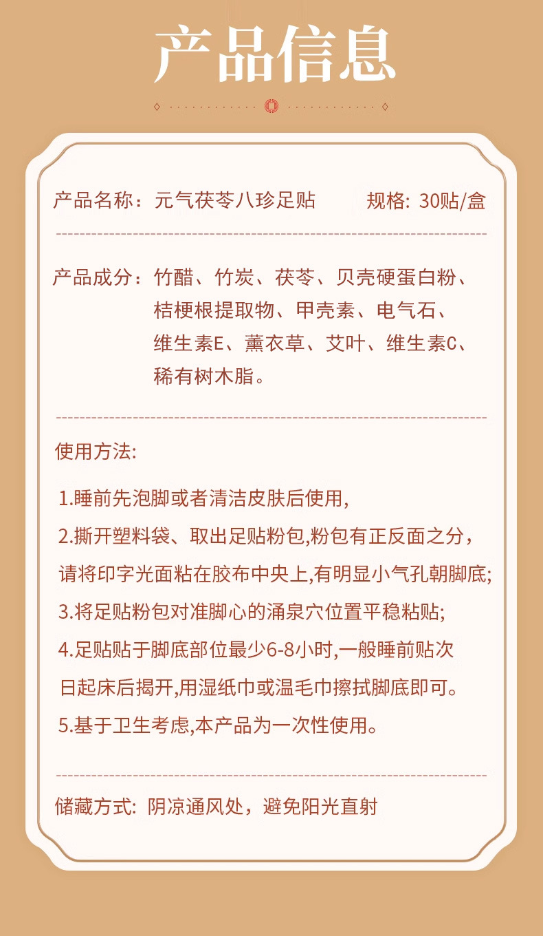 元气茯苓八珍足贴睡眠贴艾灸贴脚底贴温灸贴老北京草本足底贴