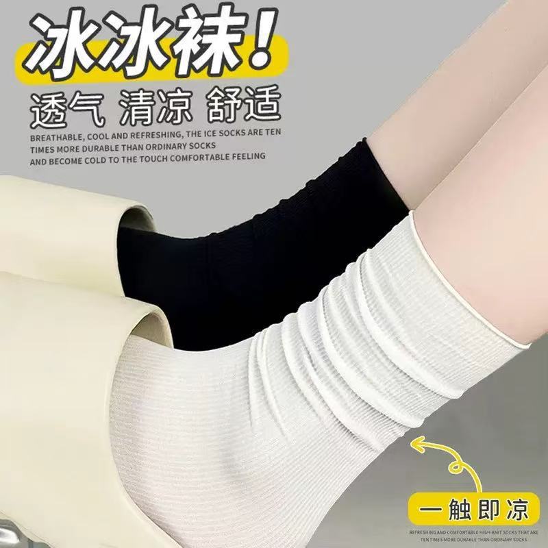 夏用薄手アイスソックス キャンディーカラー 白黒 ミドル丈 JK風 日本学生風 ベルベット風 パイルソックス 冷感