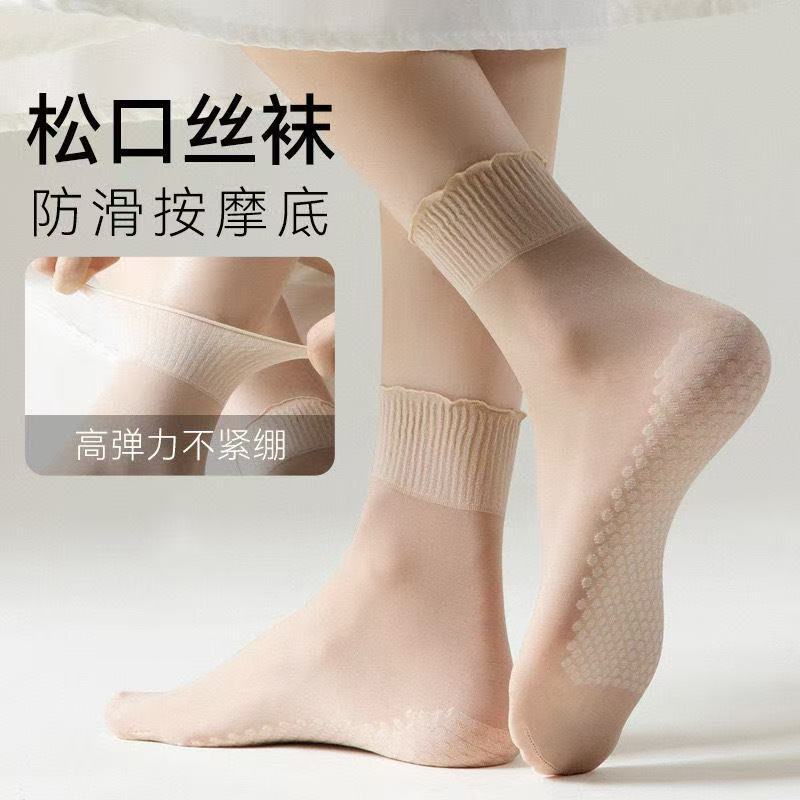 足を締め付けない高齢者や妊婦向けのゆったりとした蓮の葉の形をしたショートストッキング、夏用の薄手の破れ防止ミッドカーフストッキング、幅広の開口部、通気性があり軽量