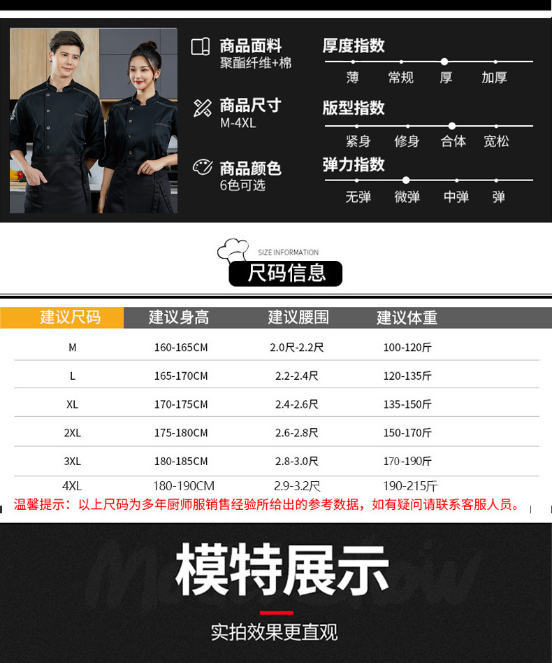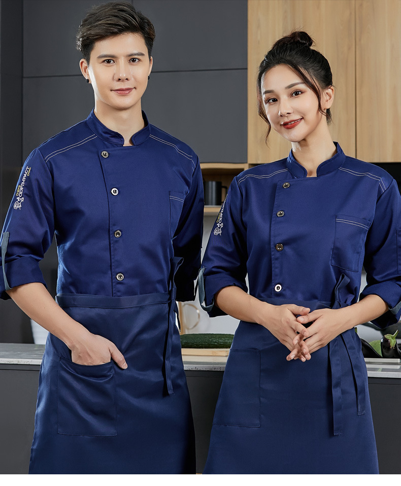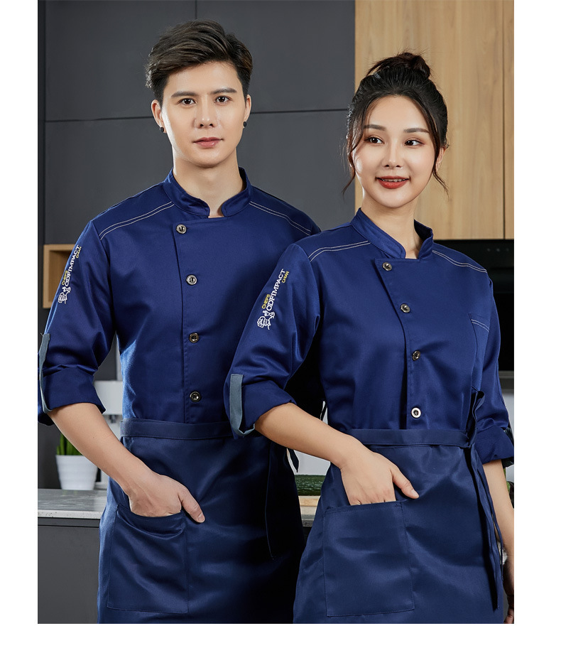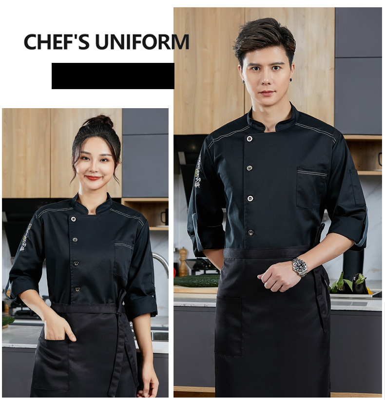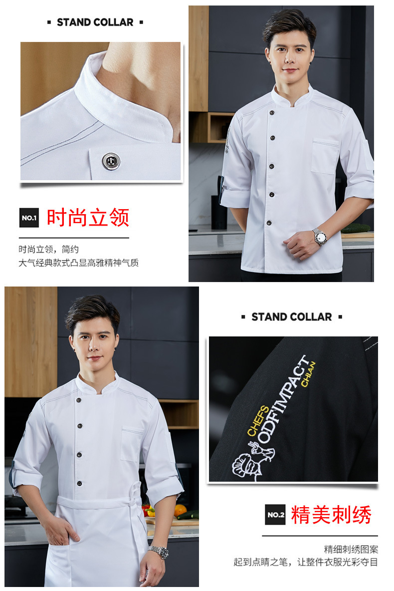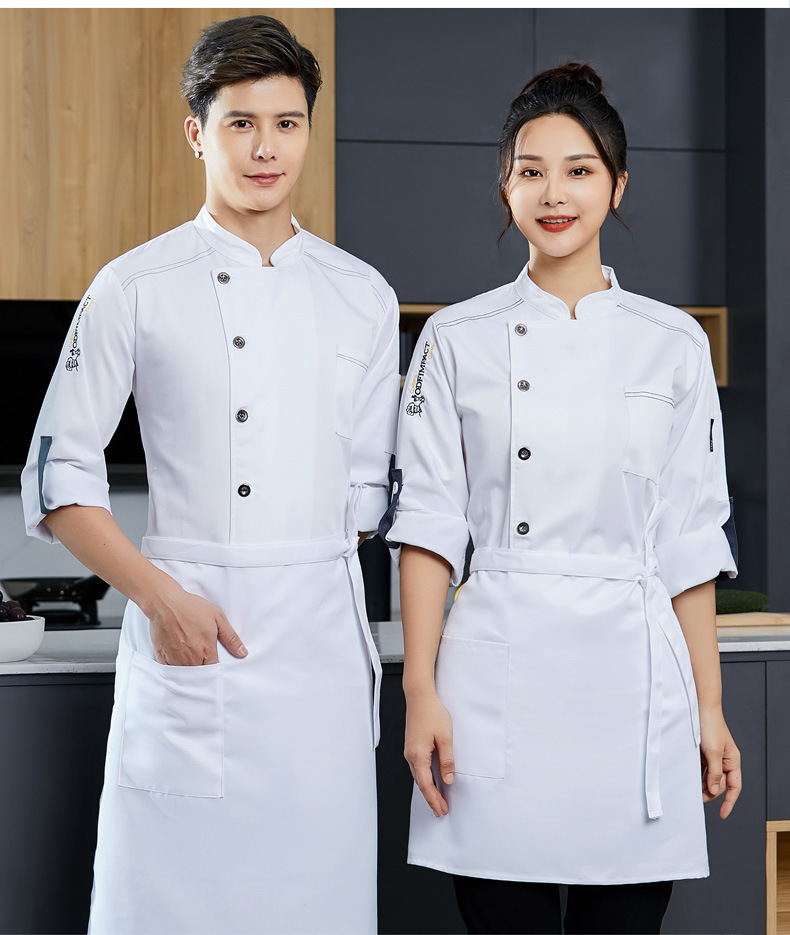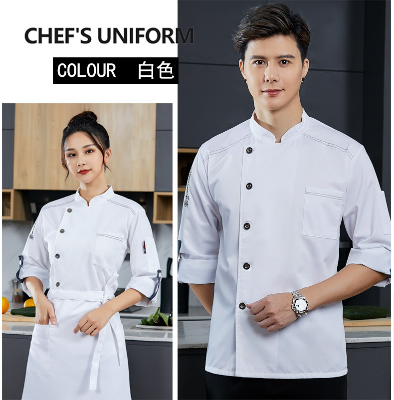 料理人作業服長袖男秋冬飲食新七分袖女ホテル厨房食堂中国式白色高級