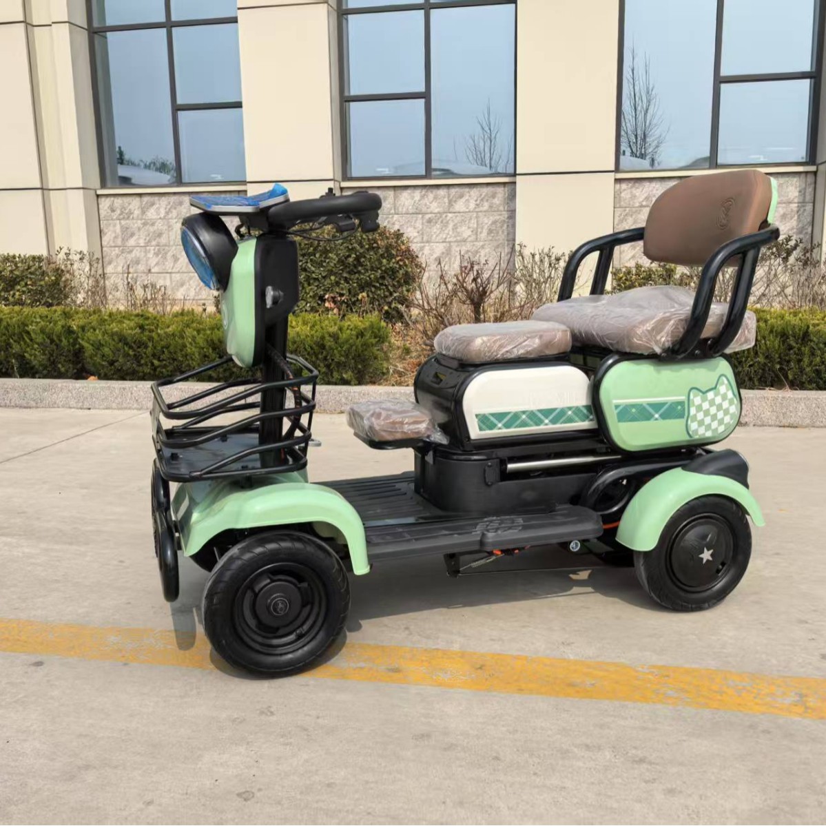 電動車、高齢者用電動スクーター、四輪、家庭用、軽量、折りたたみ式、高齢者送迎、子供の送迎、買い物用電動自転車
