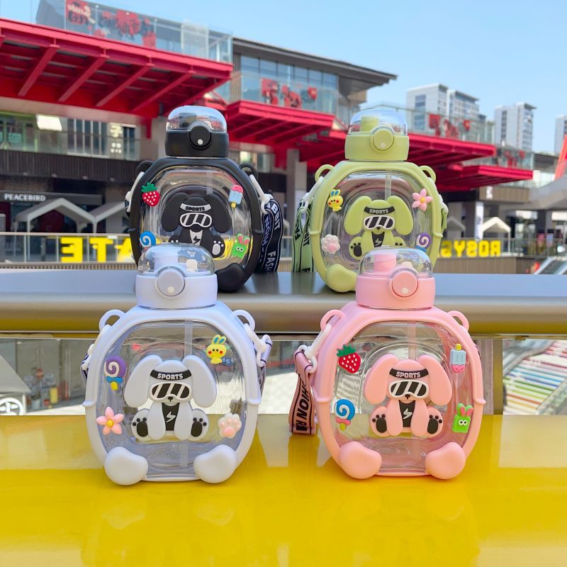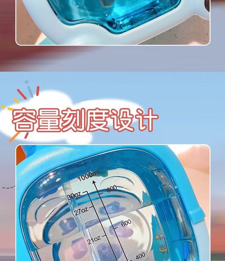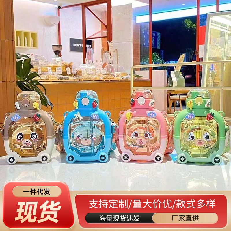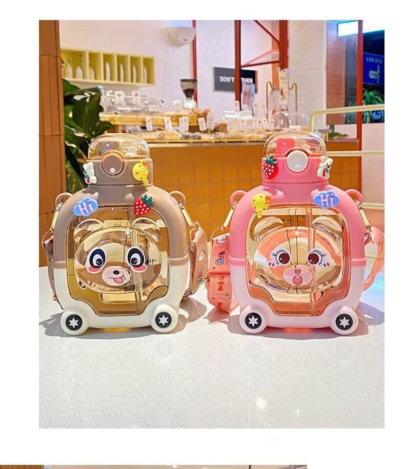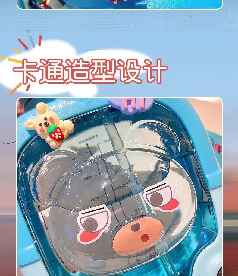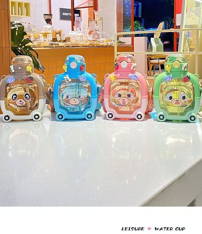 网红卡通小熊塑料吸管杯大容量水桶便携式背带双饮魔力熊儿童杯