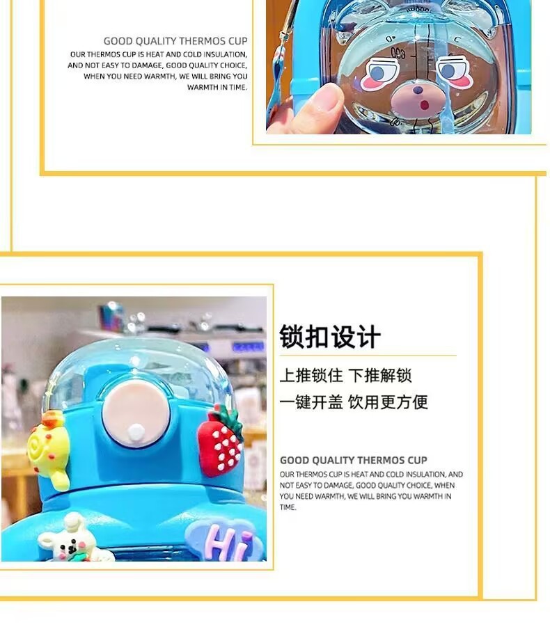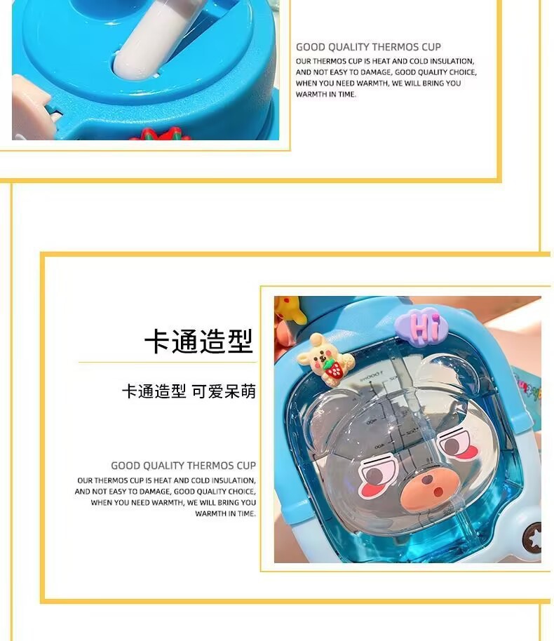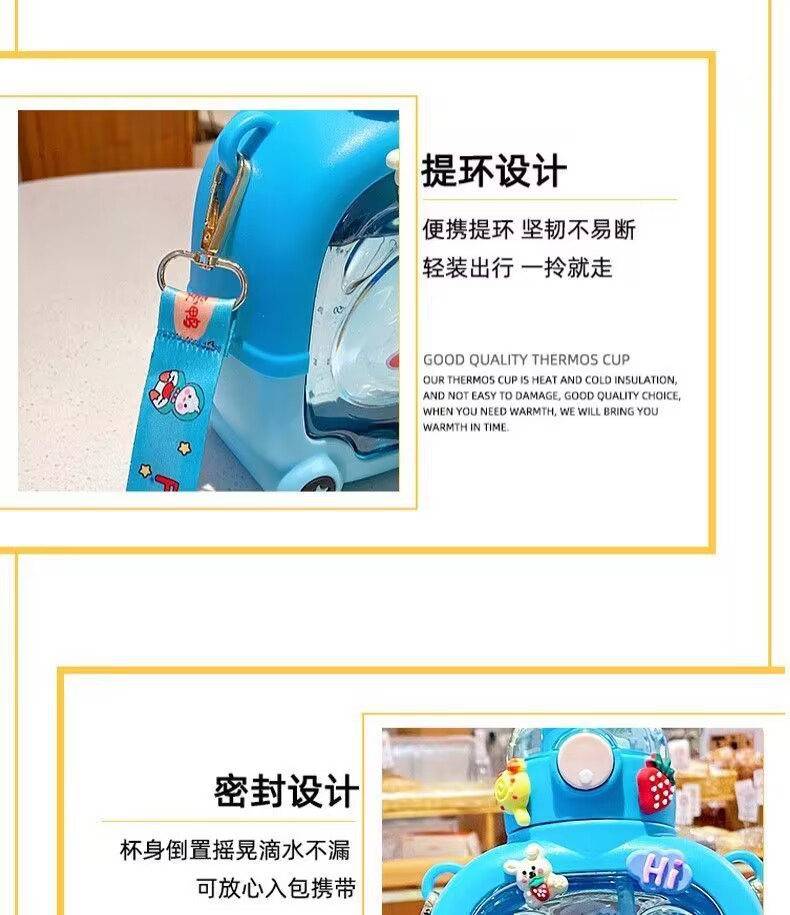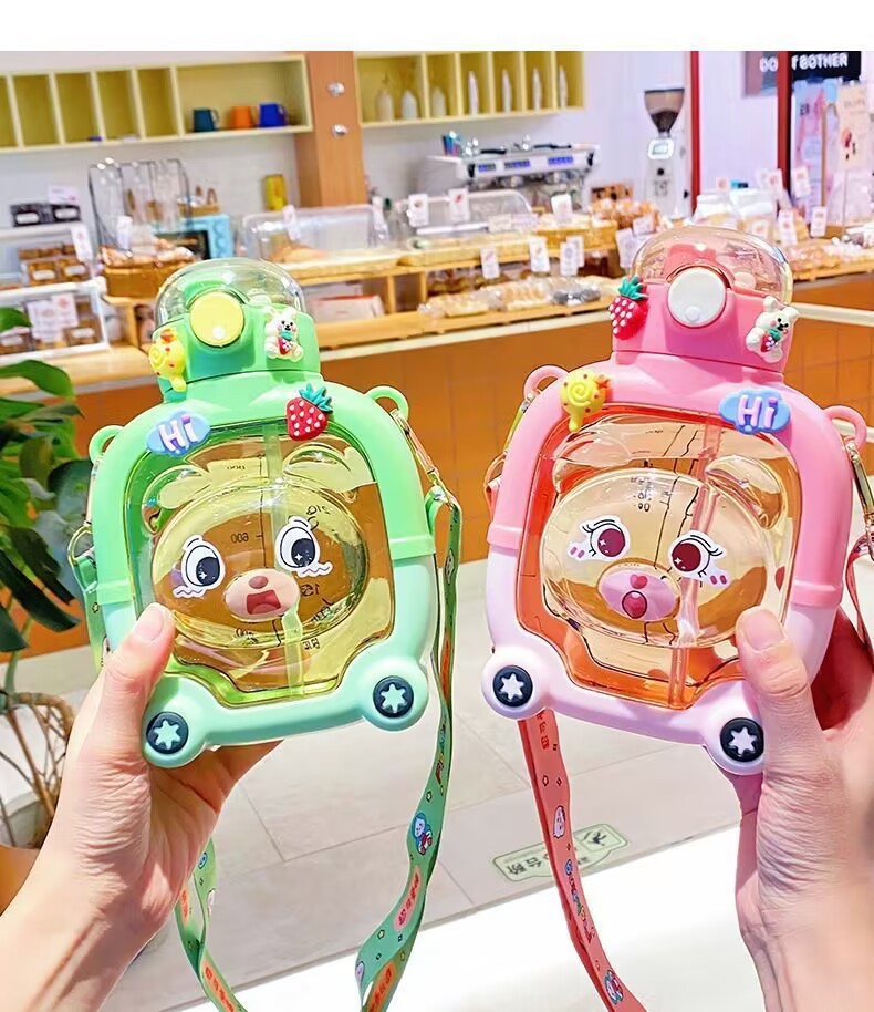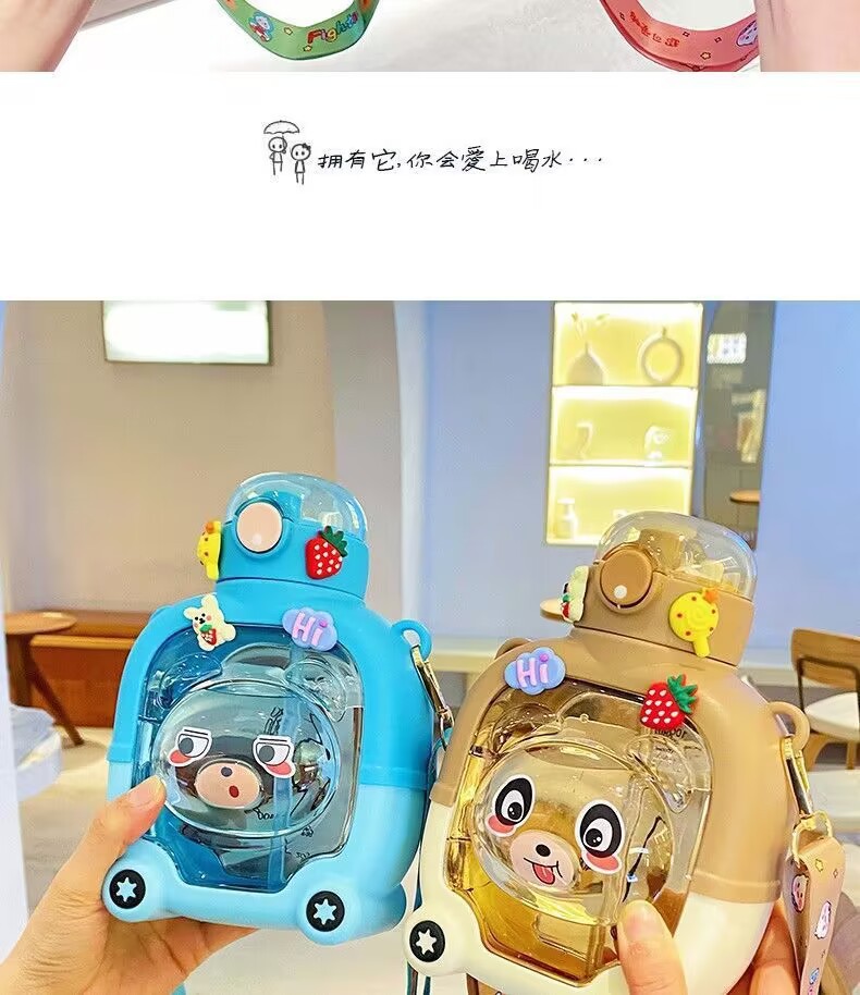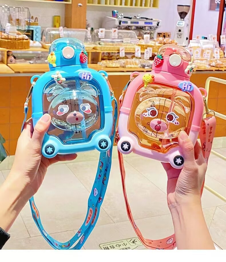 子供用ストロー付き水筒 プラスチック製カップ マジックベア 可愛い 大容量 漫画風 高品質 ベルト付き 携帯用 水筒メーカー