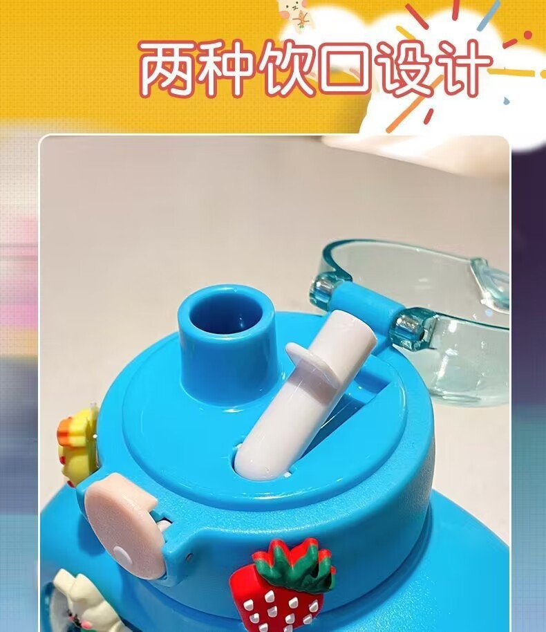 2025 新しいダブルドリンクプラスチックウォーターカップ子供のストローカップ漫画カラフルな活力カップ大容量ポータブルケトル