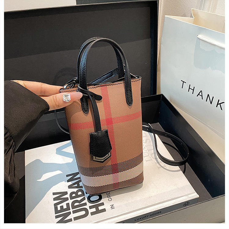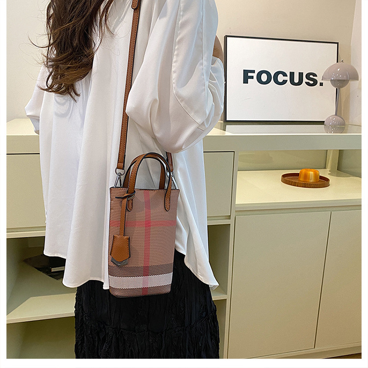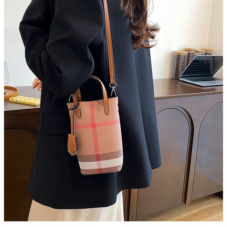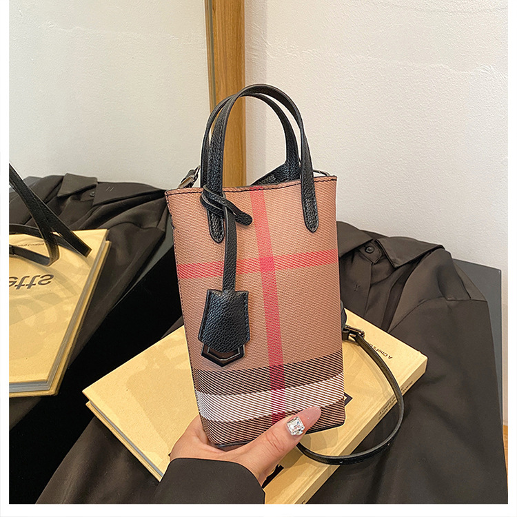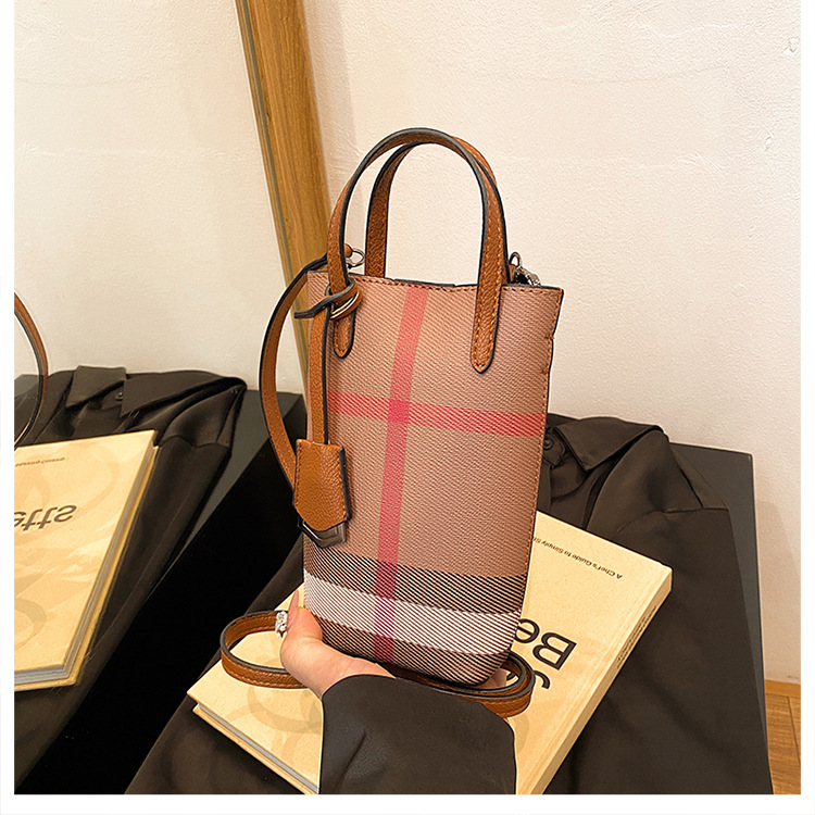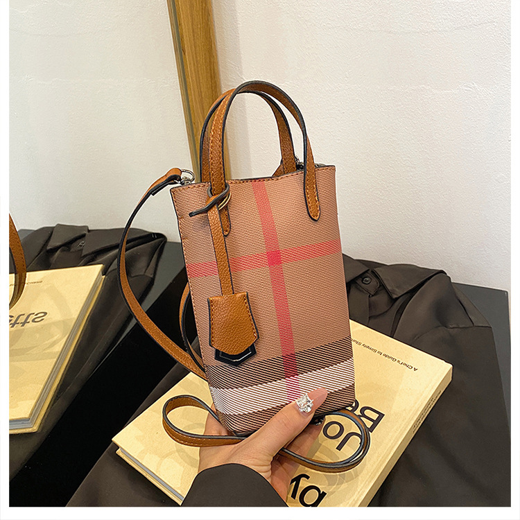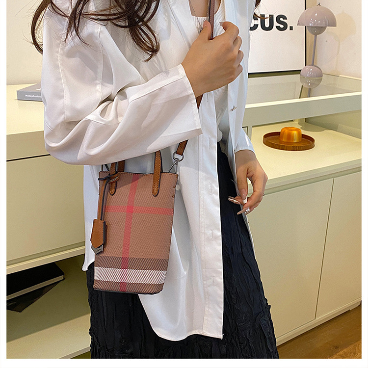 起爆したミニ携帯電話のバッグの女性は、2024の新しい洋風バッグのキャンバスの格子に斜めにまたがって、軽い手でショルダーバッグを持っています