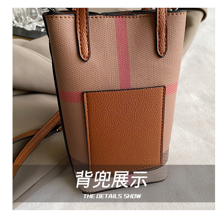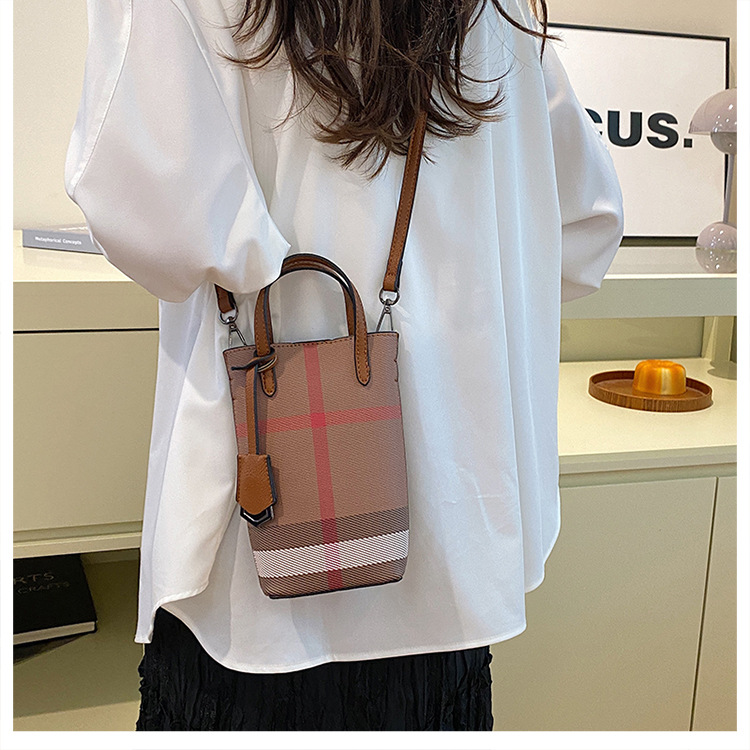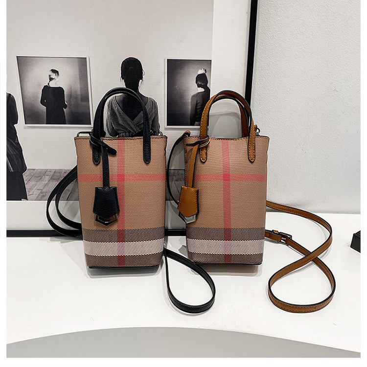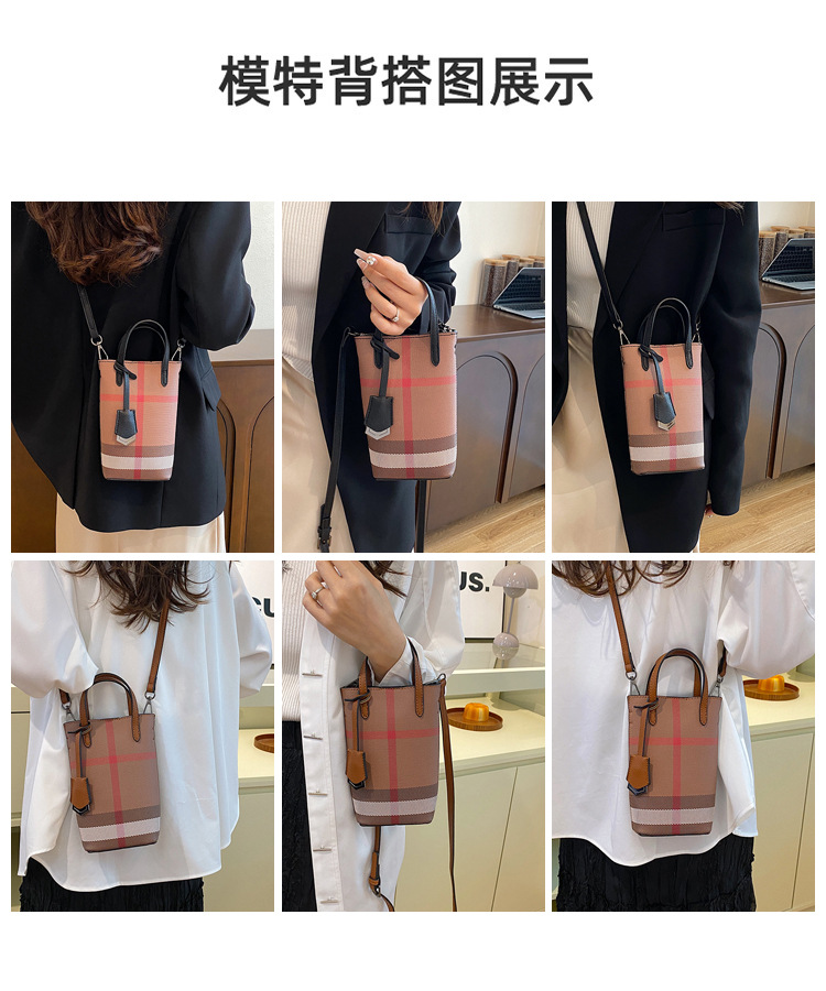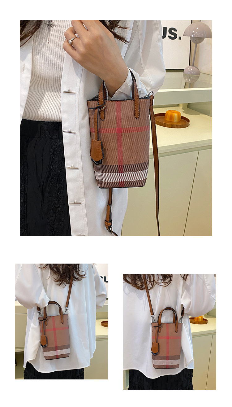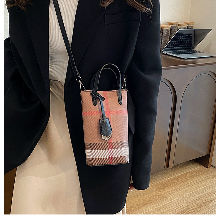 起爆したミニ携帯電話のバッグの女性は、2024の新しい洋風バッグのキャンバスの格子に斜めにまたがって、軽い手でショルダーバッグを持っています