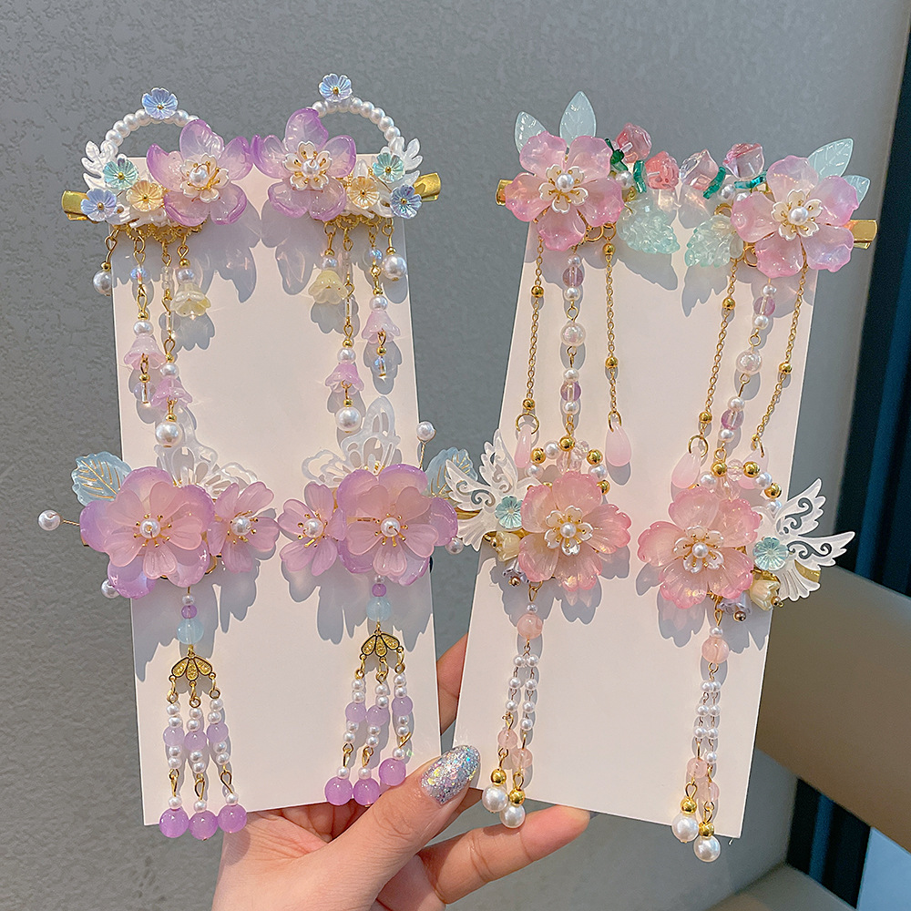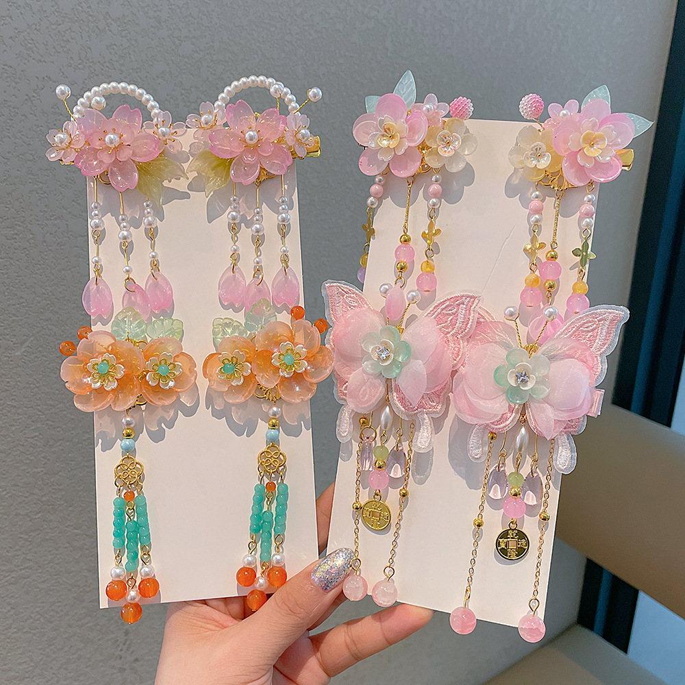 女の子中国風歩行流蘇髪飾り子供漢服古風古着花ペンダント女の子ヘアクリップ