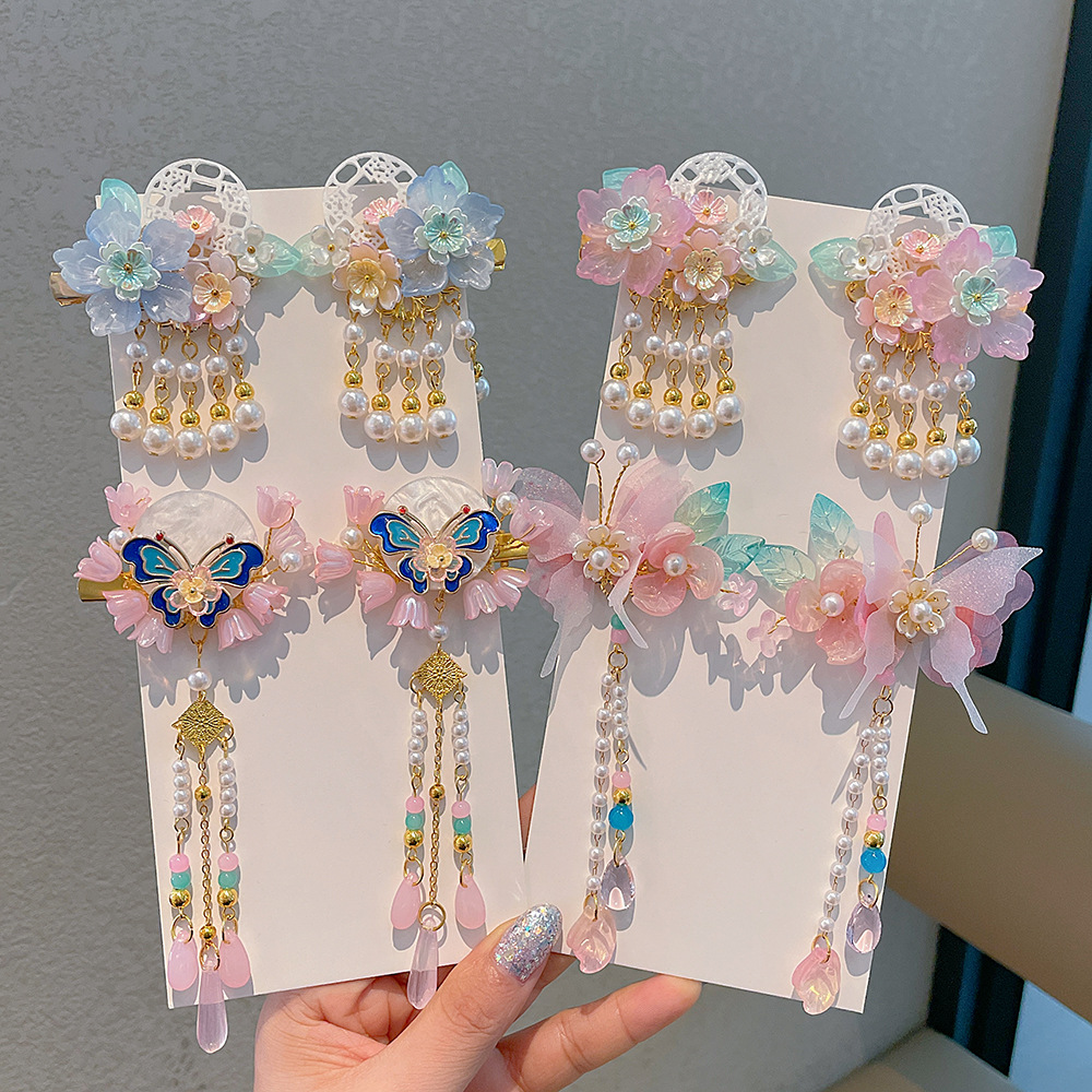 女の子中国風スーパー妖精古代スタイルヘアアクセサリー子供漢服タッセルステップロッキングヘアピン赤ちゃん建国記念日ヘアピン頭飾り