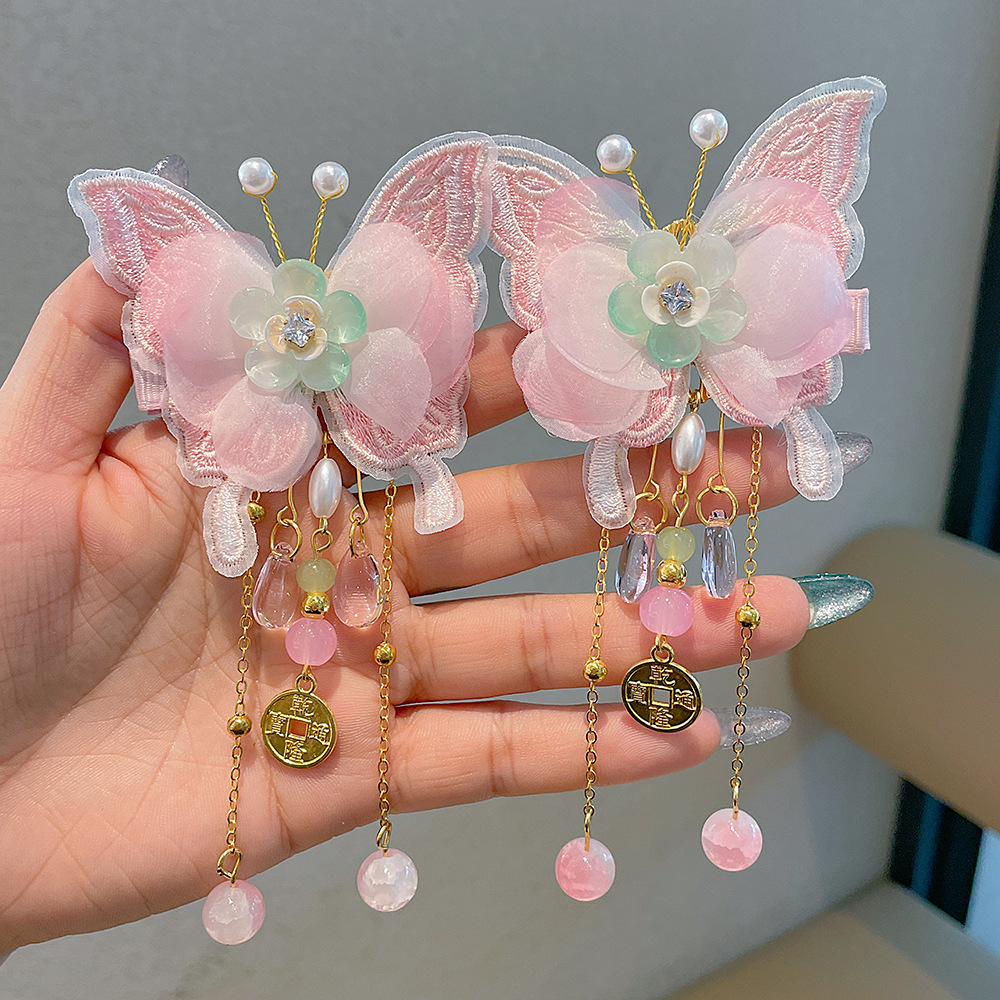 子供の漢服の頭飾りの赤ちゃんの中国風の蝶の超仙の古風な髪飾りの女の子の時代の演出のフリンジヘア