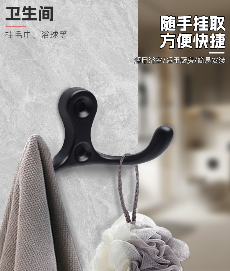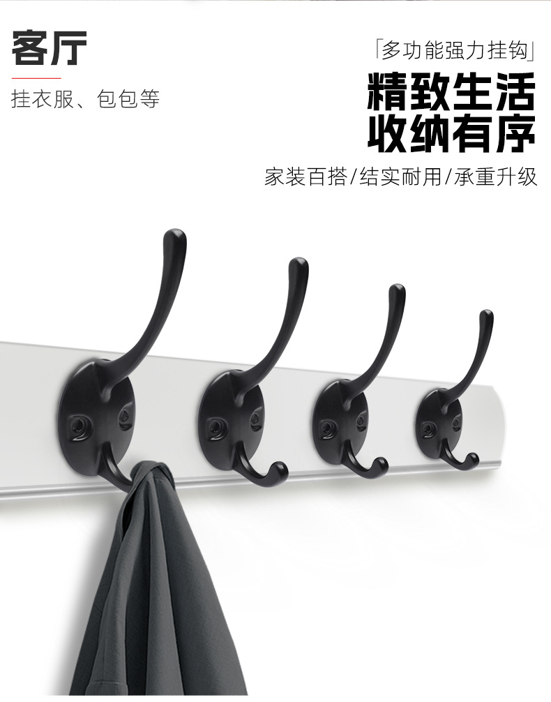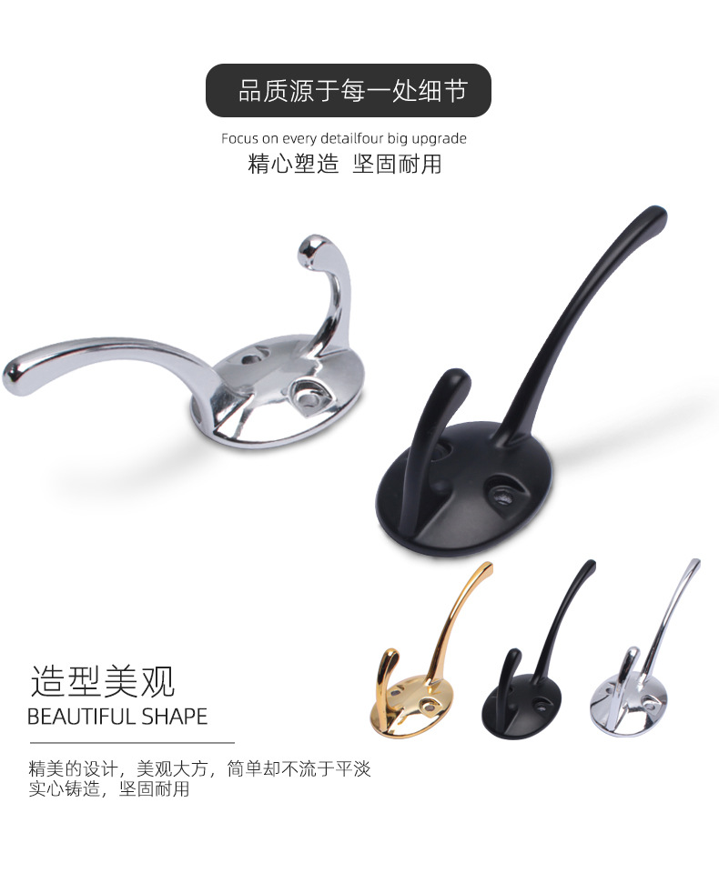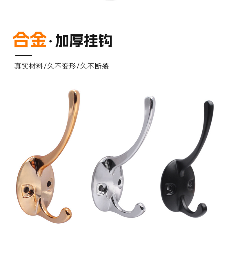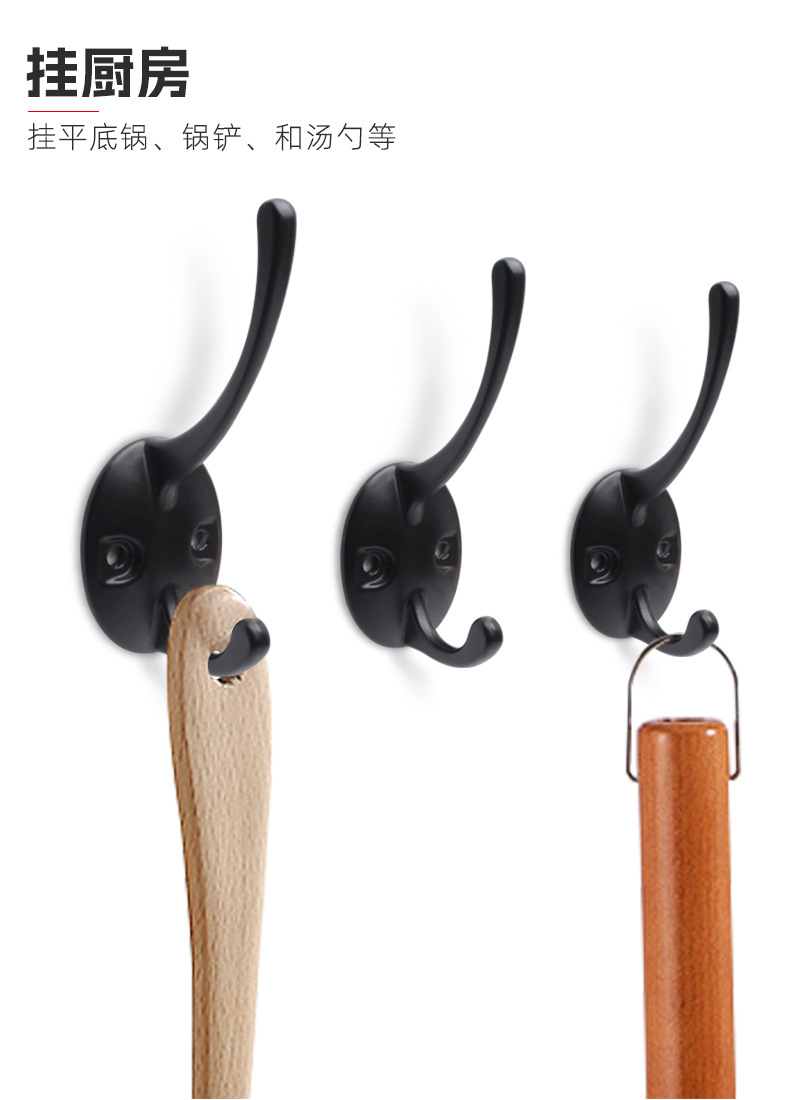 铝合金挂衣钩学生美式挂钩浴室厨房门后衣帽钩厕所挂钩墙上小双勾