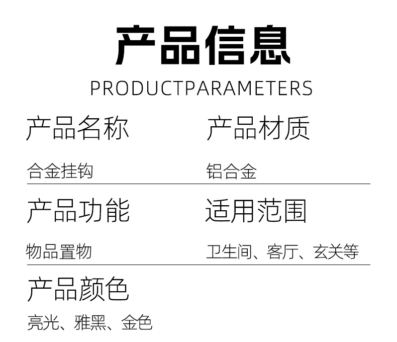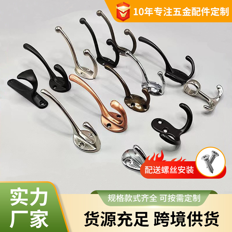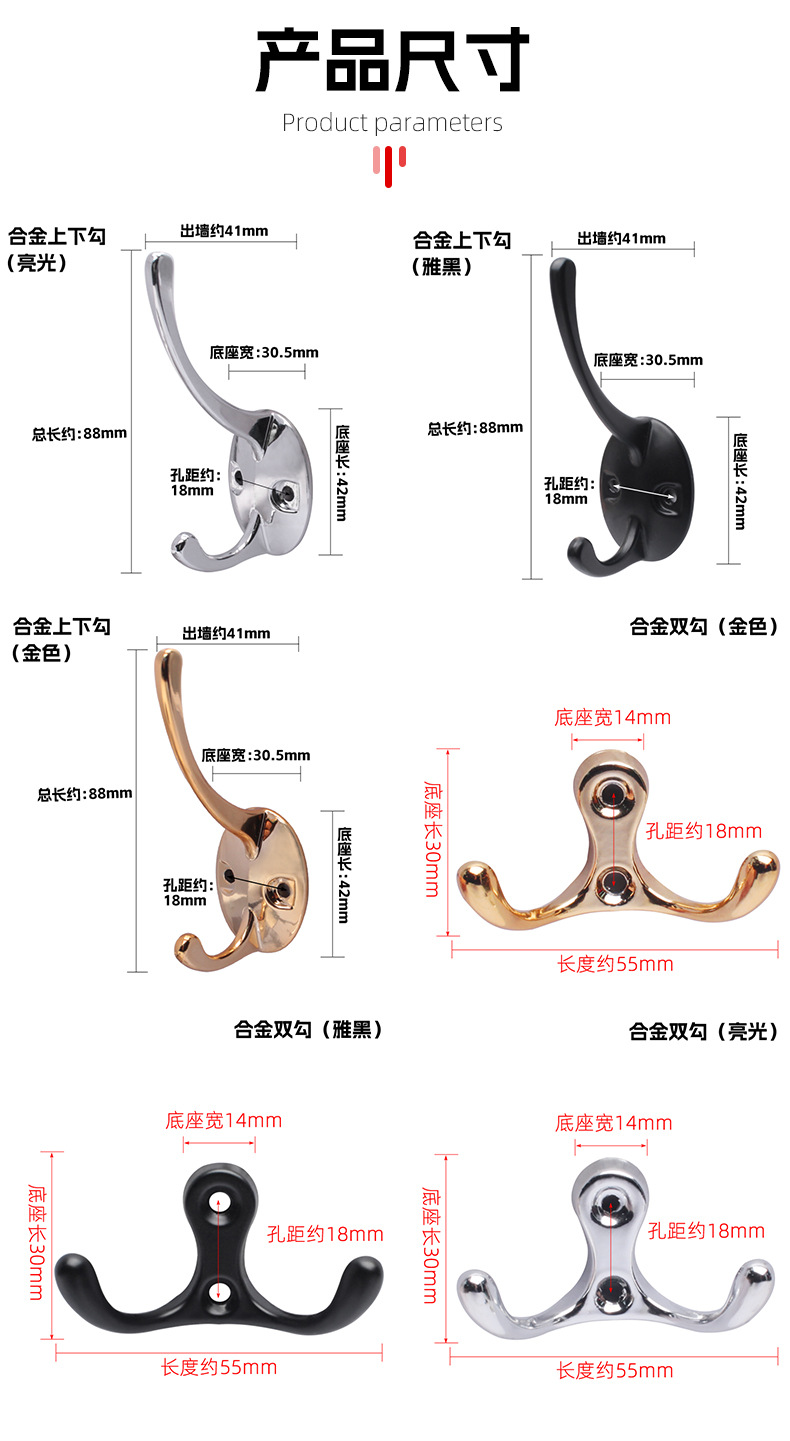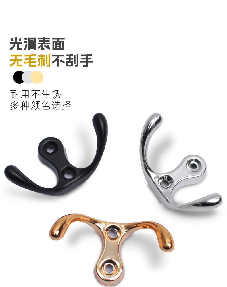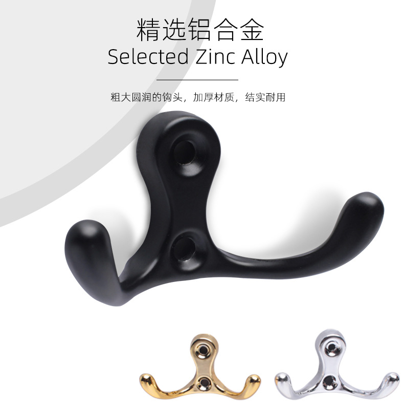 铝合金挂衣钩学生美式挂钩浴室厨房门后衣帽钩厕所挂钩墙上小双勾