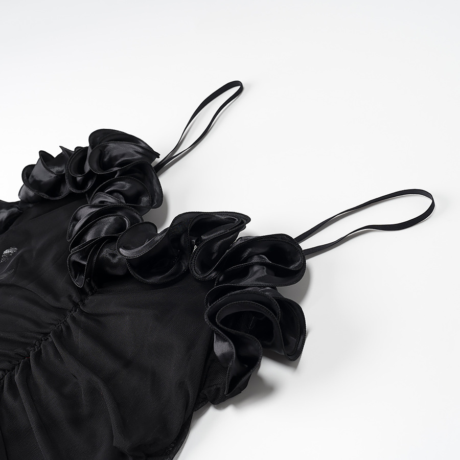 ZARZ 自制 欧美风 新款女装 百搭绢网露背设计V领吊带围巾连衣裙
