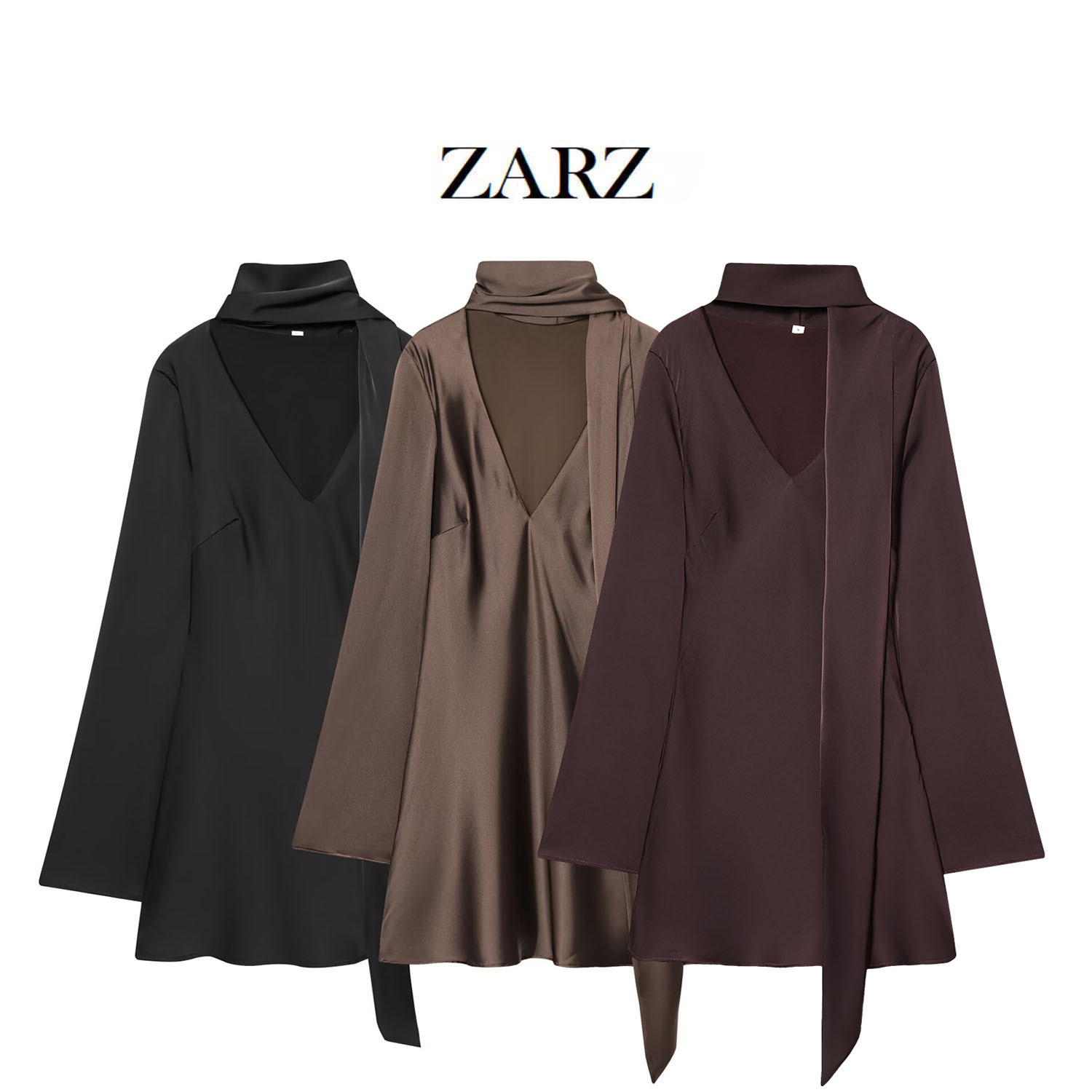 ZARZ 自制 欧美风 新款女装 洋气 丝缎质感围巾连衣裙9234/331